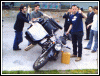 Wolfgang Uhl of Germany sits happily on his M1 Super with a sidecar full of kinder. Wolfgang has had his bike since February of 2002 and opted for the second sidecar seat... for apparent reasons! | ||||