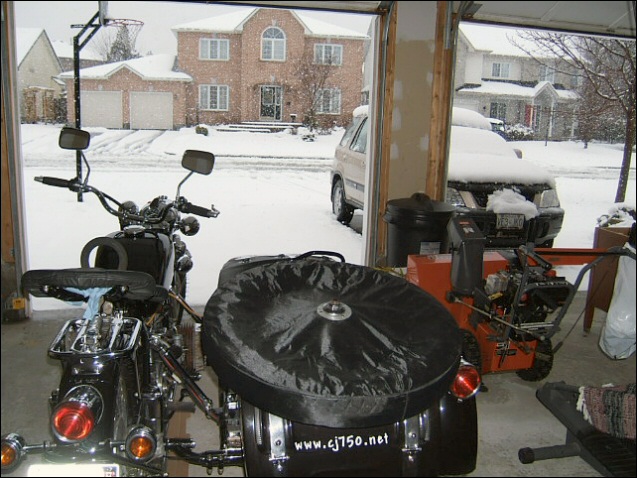 Gary Morgan's bike is as snug as a bug in a rug while this crazy mid-April blizzard rages outside. | ||||