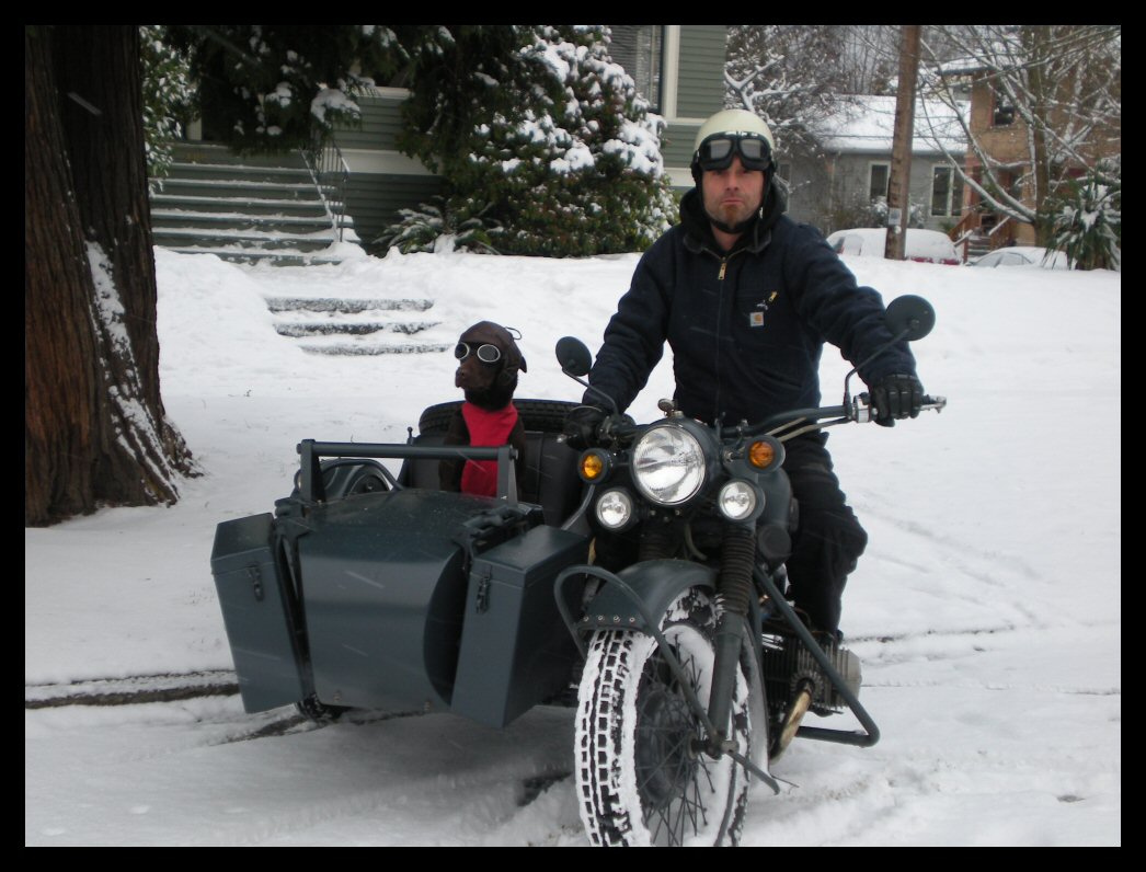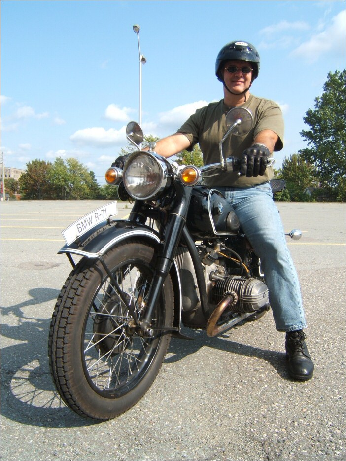 David Phillips lives in Riverview, New Brunswick, Canada. He rides one of Jimbo's BMW re-powered bikes. "It takes me at least an hour longer to go anywhere when I ride my red machine. As soon as I stop, I have to go through the story, about China, and BMW and 1938. It is fun though and I am just waiting to get it on the road this year." | ||||