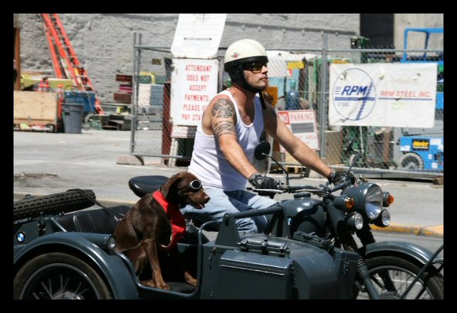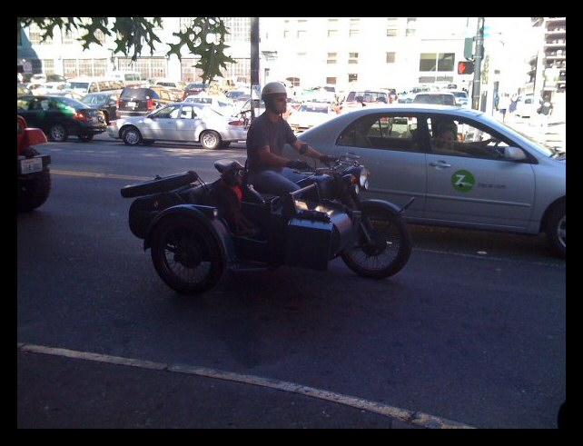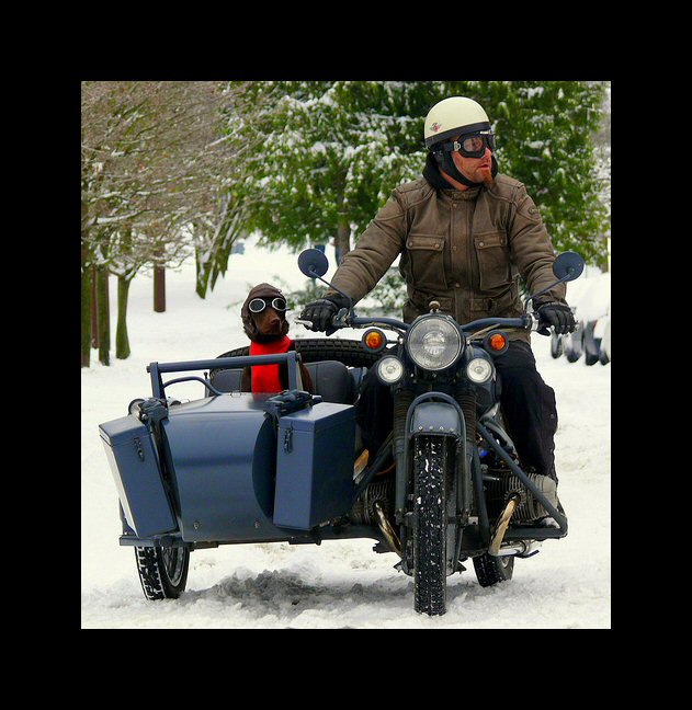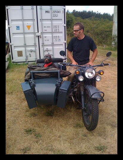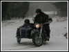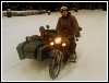 | More pics from André Duguay: "Found this on internet (English Russia.com) and thought it might interest you. It is a motorcycle made with two Ural engines and I believe a charger." | |||||