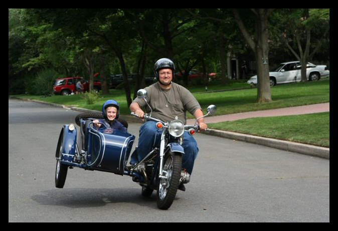Here's Keith Pedersen with his three children and his OHV. In this picture, the bike is "fresh off the trailer", taken the day he got it. He found the bike locally, in New Jersey, and as it turns out, it originated at Luke's in Beijing. | ||||