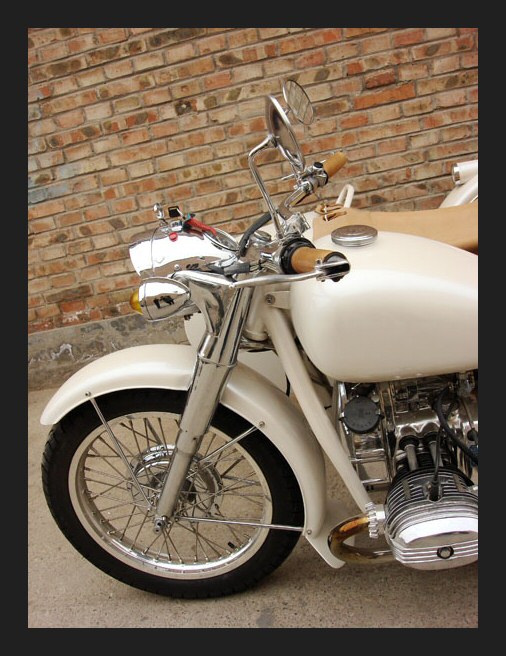 And this is a K750, all stripped down. Take a look at that amazing front fender! The forks are of a rare variety that was only used on the first series Dnepr. Yep, it's a swing arm frame. | ||||