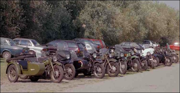 Frans de Wit's CJ sits at the end of a row of Russian bikes at a 1999 gathering of the Ural-Dnepr Club fo the Netherlands. | ||||