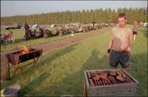 Another advantage to having a sidecar... you can carry a BIG tent! This image is from the Limburg meet. This tent has been in the de Wit family for 35 years! | ||||
