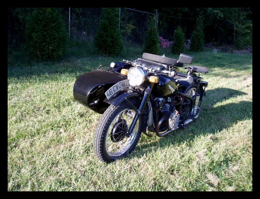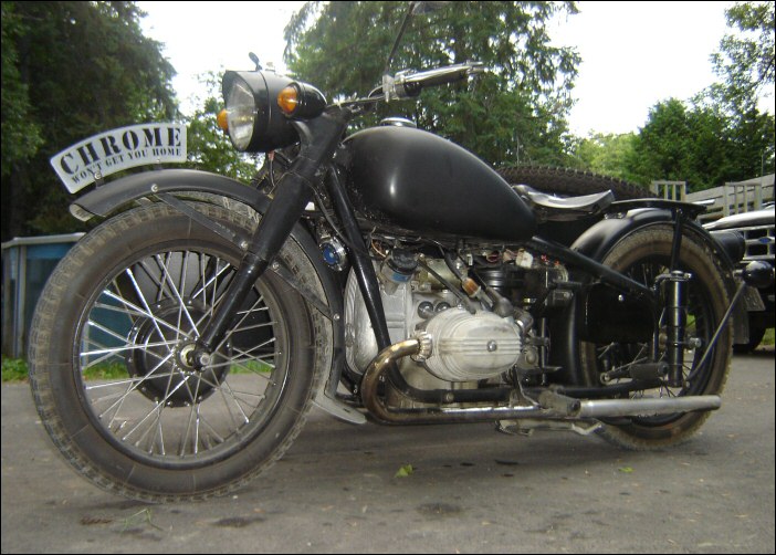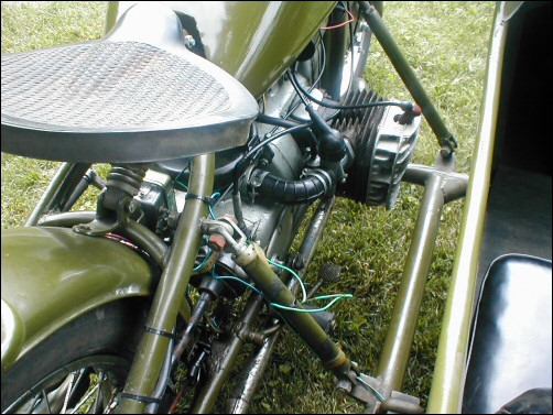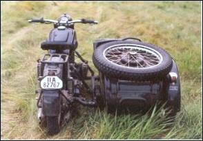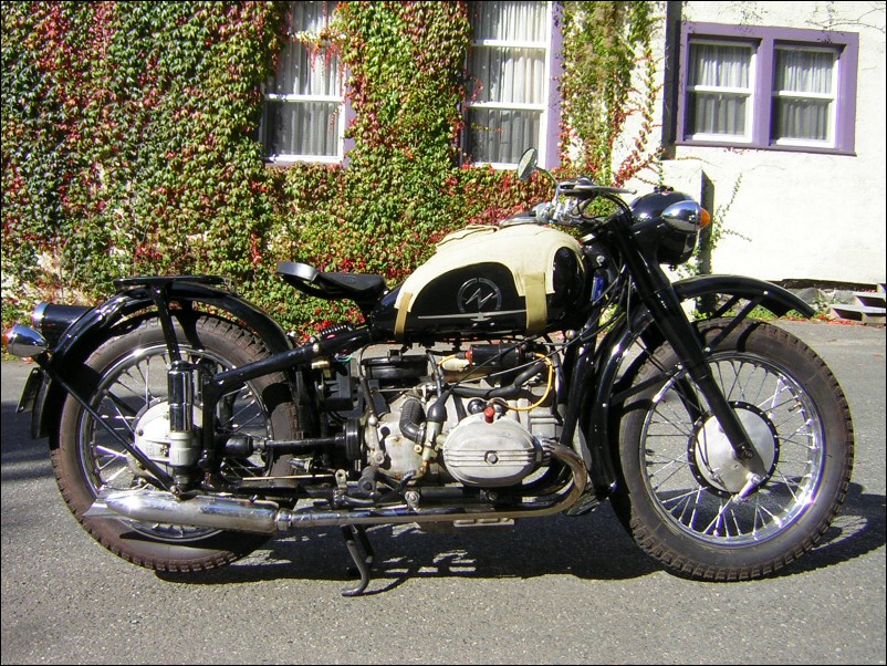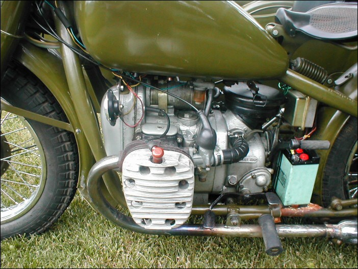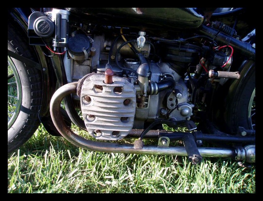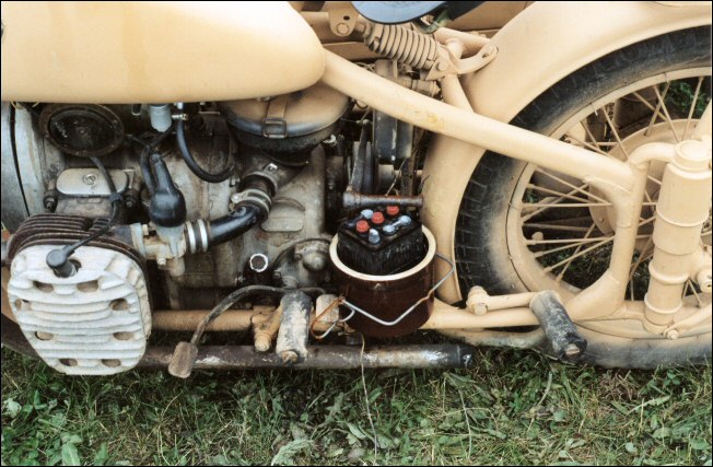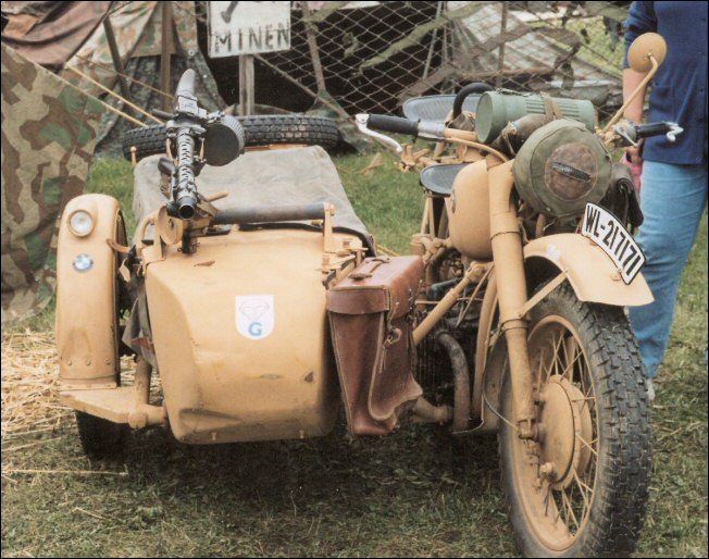 Tom Andrus went to the big WWII re-enactment near Reading, Pennsylvania earlier this year. There were genuine BMWs there, even some R75s. The distributor and horn tab on this bike reveal its true M1M identity. | ||||