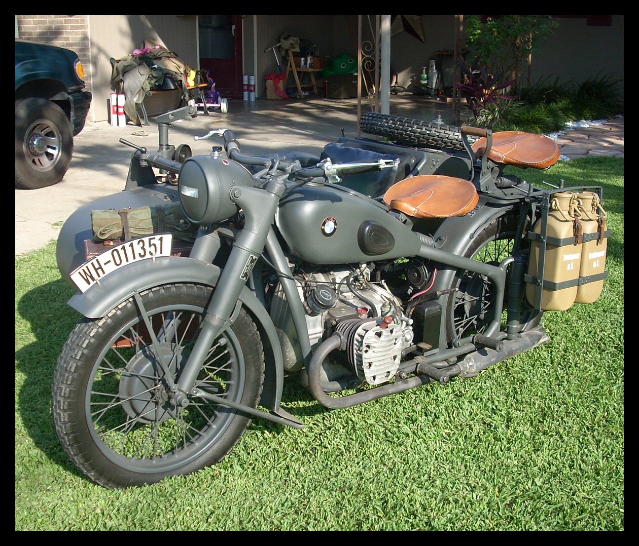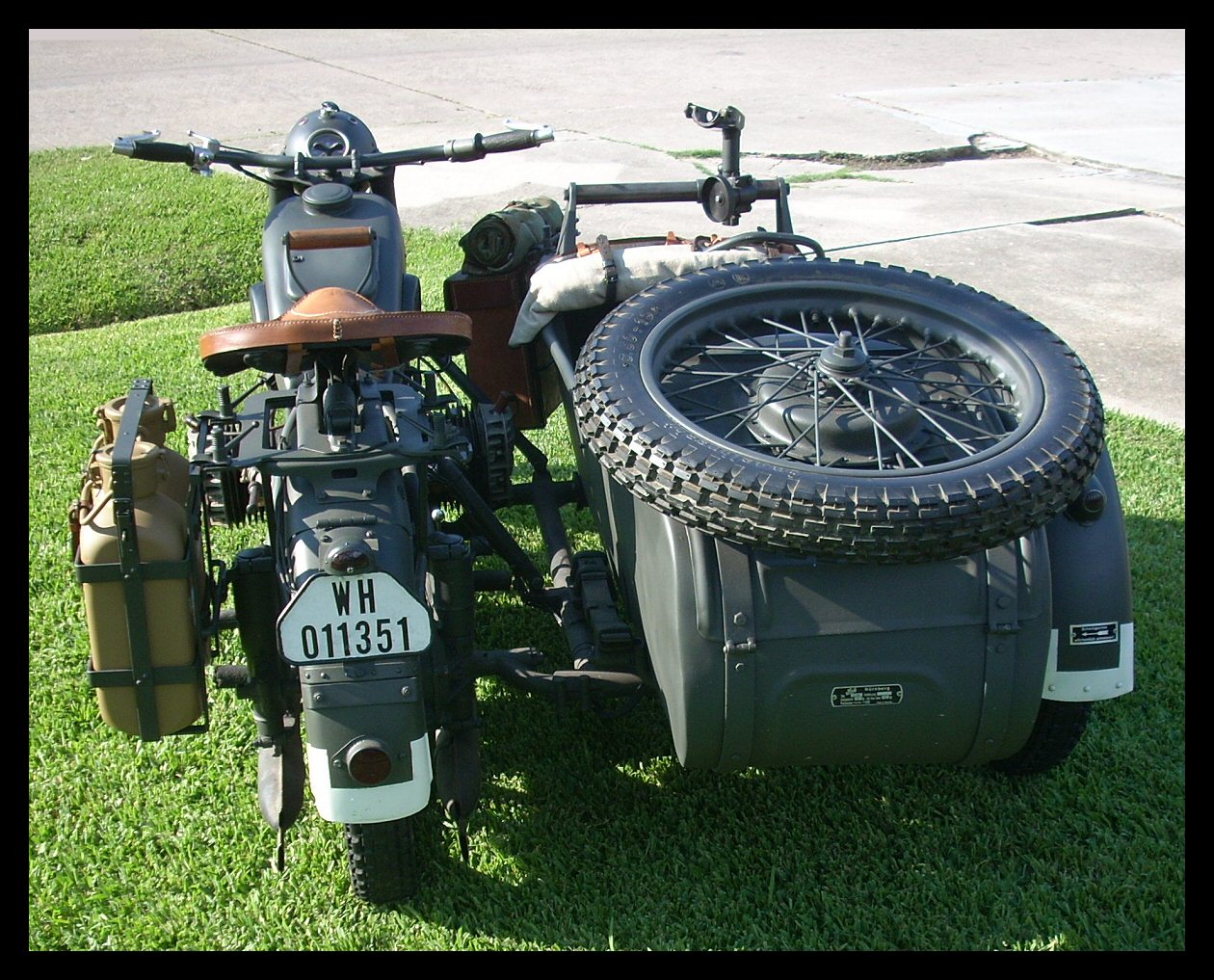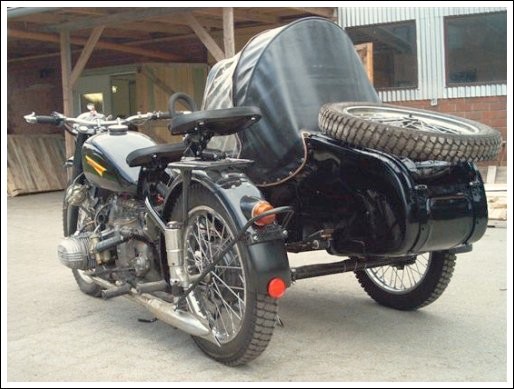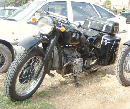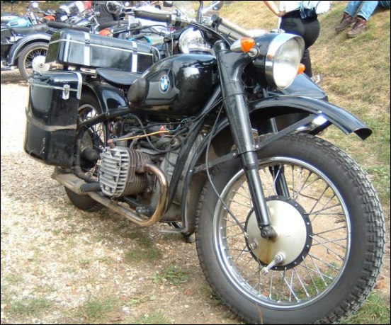 Tom Andrus went to the big WWII re-enactment near Reading, Pennsylvania earlier this year. There were genuine BMWs there, even some R75s. The distributor and horn tab on this bike reveal its true M1M identity. | ||||