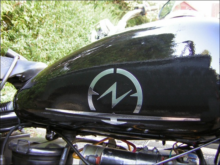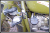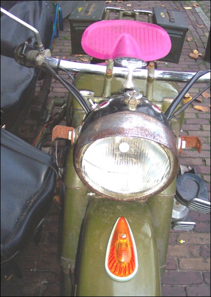 Frans de Wit's M1M shows us that no two bikes are alike once their owners have applied their personal touch. The front fender lighting on Fran's bike reminds me of vintage Indians. He bought it at a gas staion in the US. In the enlarged image you can see the famous pink seat that he won from Scott Snaden on eBay. | ||||