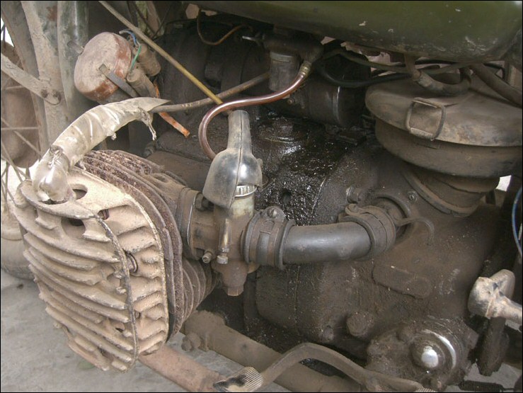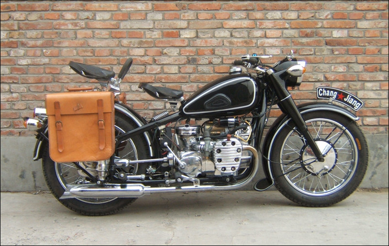 "How they manufactured M72s from 1941 on is a riddle to me. He visits they Hongdu factory in Nanchang. The opening text reads: As the door of the derelict Chinese factory hall opens, we have to blink our eyes. The twilight falling through the dirty skylights slowly reveals a prewar view. Time stood still at Chang Jiang. The story is about the things we all know so wellthe CJ is more and more popular with ex-pats, Europeans and Americans, it's easy to fix, and still very much like the original R71 from 1938." | |||