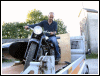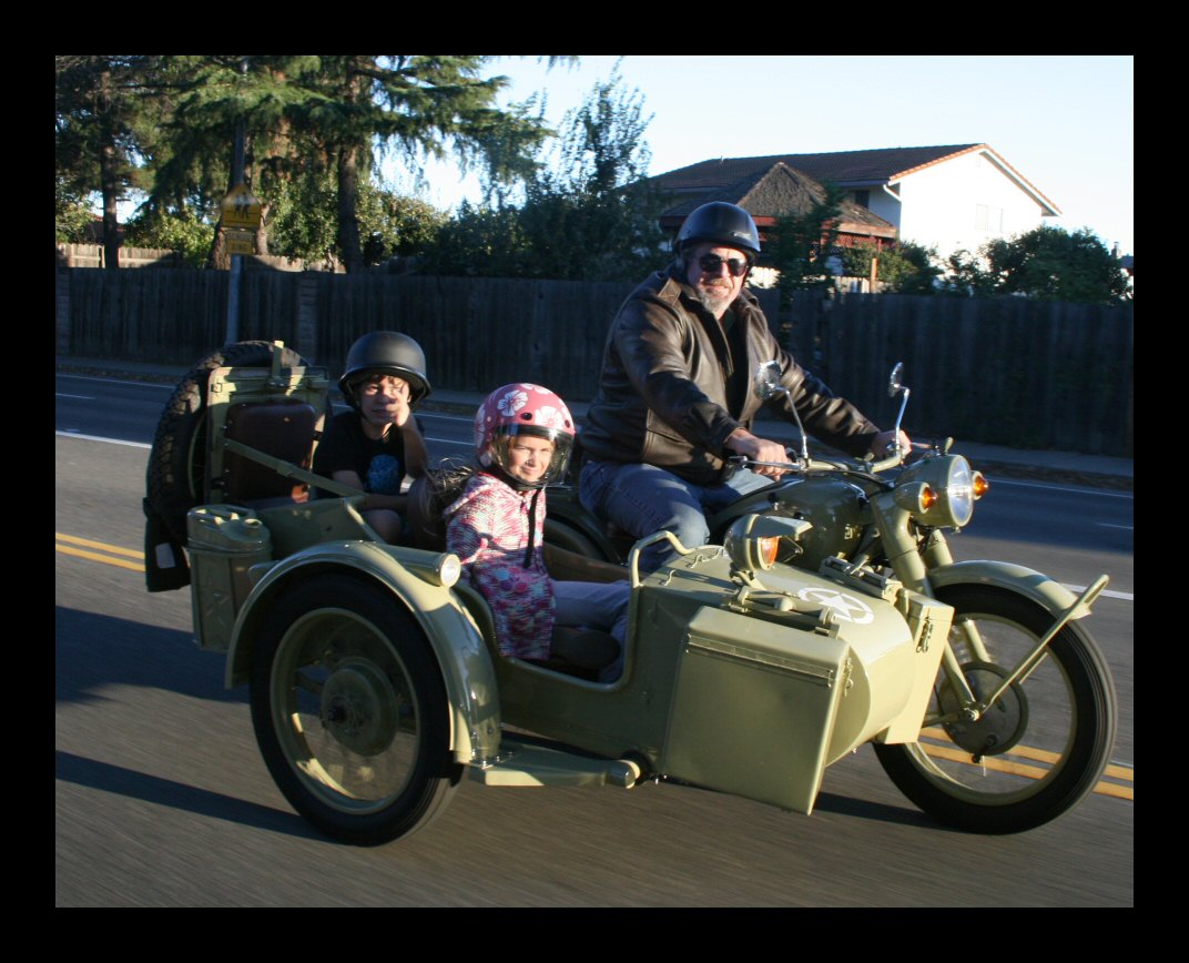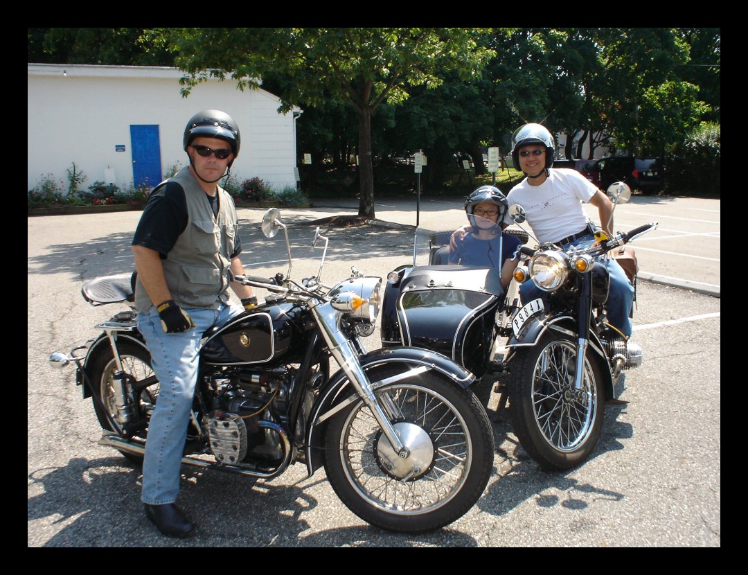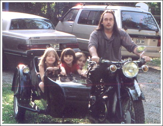 | From Pete Valentino: "We got our bike from Shao a few weeks ago. They did a great job! Freddie B. helped me get it through customs and do the initial tune up. I got the plate last week from the DMV. Shao and Freddie had all the paperwork in order and registering the bike was a snap. Here are some pics of me and the kids. Over the weekend I was getting some gas and when I came out of the station, three old timers were standing around the rig and were trying to figure out what it is. My typical line is I built it in my garage from an old BMW." | |||||