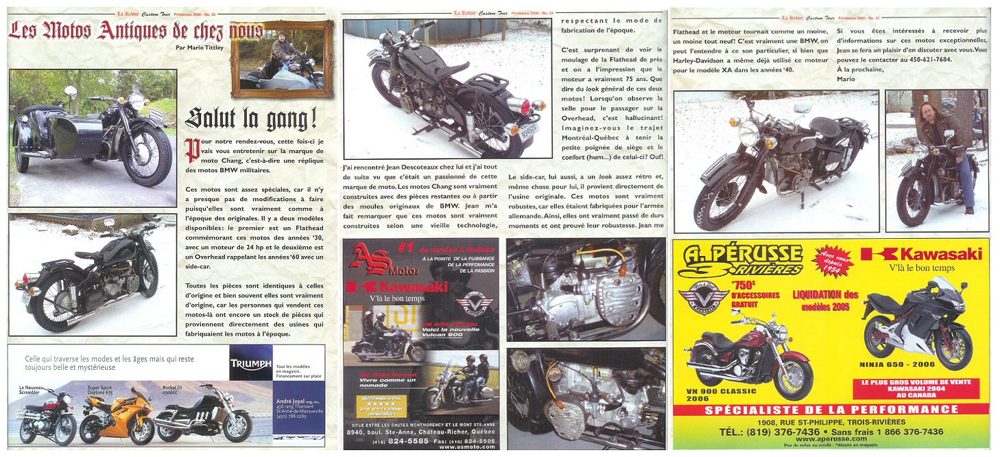 From Jean Descoteaux in Montreal: "My Changs were the subject of an article in a local bike magazine!" (Click on the picture to see the article. It's in French.) | ||||