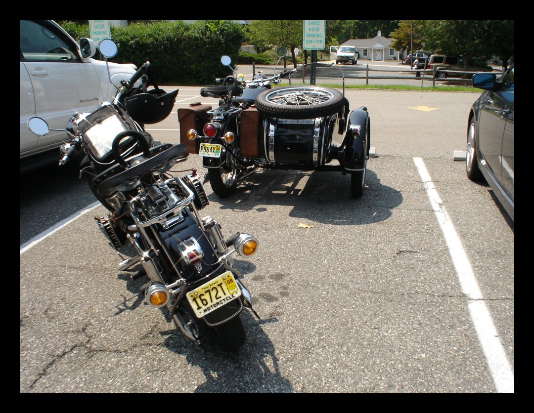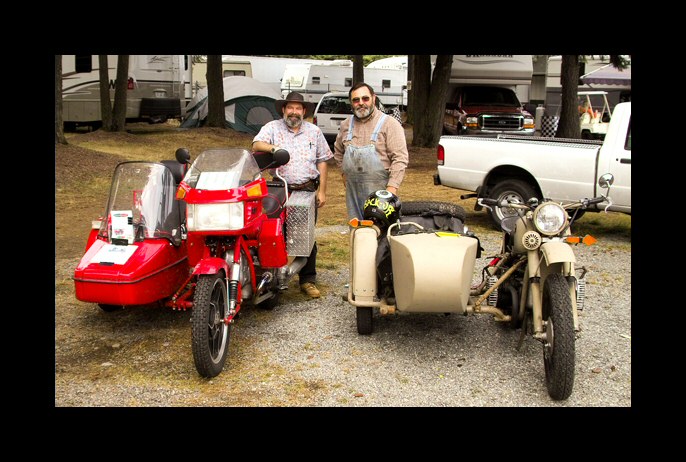 From Richard Midge: "Here are a two pictures of the first ever New Jersey CJ rally, all two of us. Myself with the solo and James with his wife Linda and there sidecar. The two of us along with our wives met and rode to lunch. We had a great time and look forward to doing it again." | |||