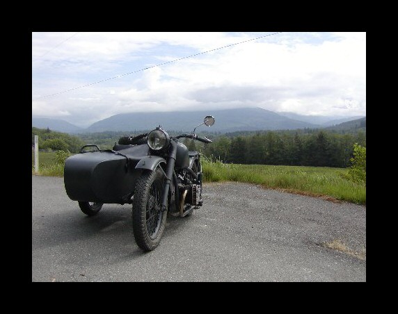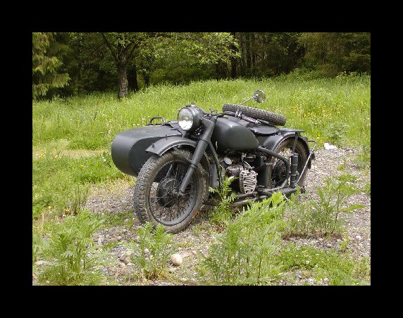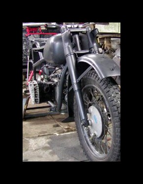 This is Pete Laughlin and his CJ, a far cry from the images he sent last year (down the page.) The bike represents a civilian R71 that was pressed into military service in Poland and France early in the war. | ||||