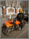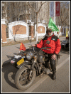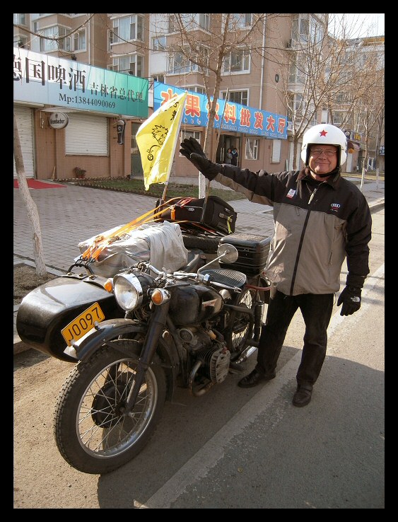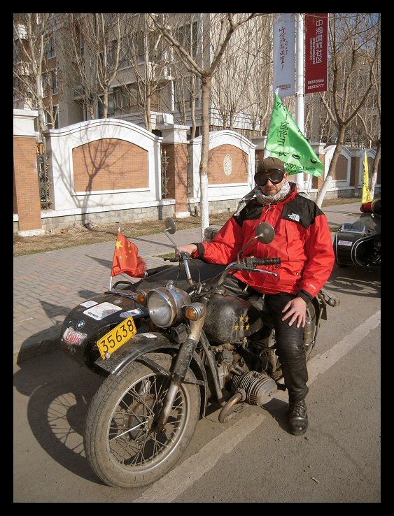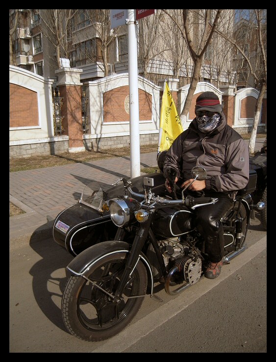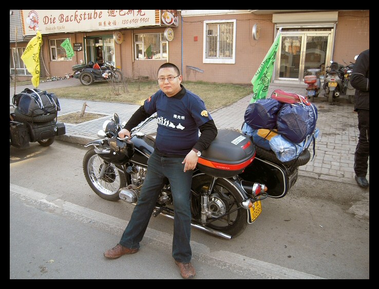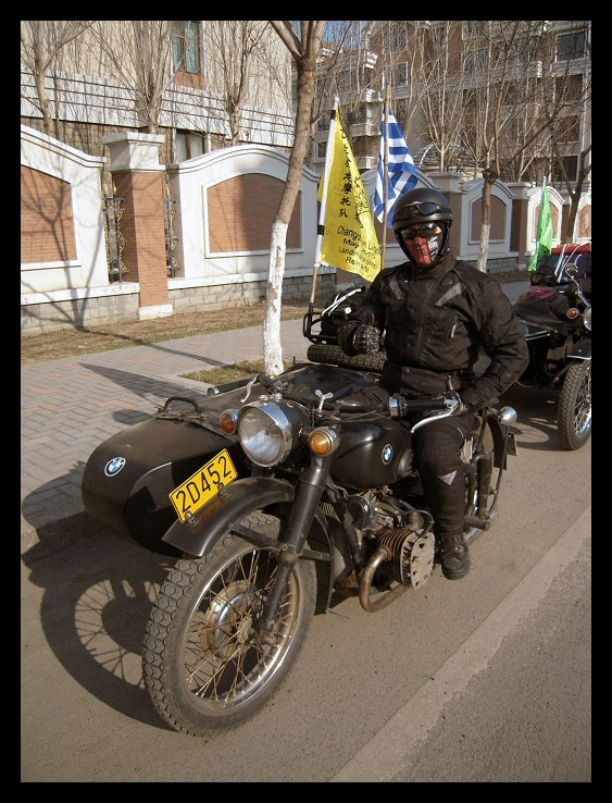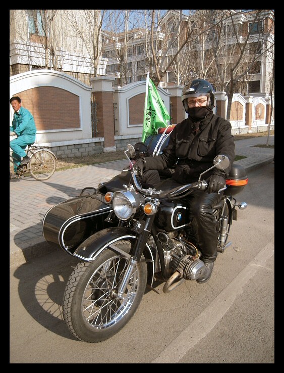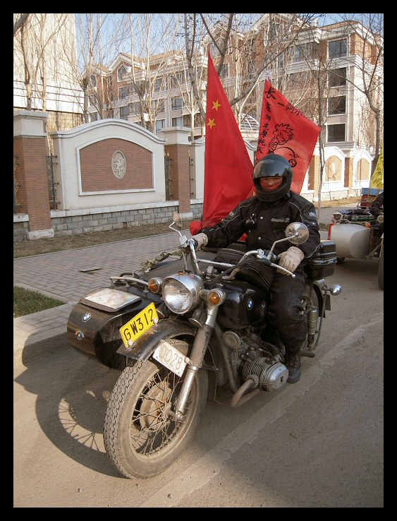 | Below: Thanks to online translators, I've been able to exchange email with Sui Guangming in Changchun. He sent these pictures of himself, his M1M and the coat of arms of his club, the Changchun Ligon Motorcycle Team. Click here to visit their blog site. | |||||