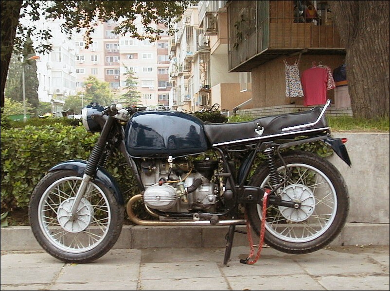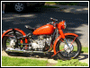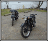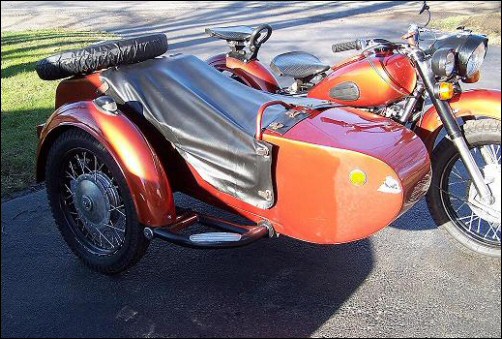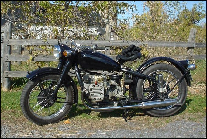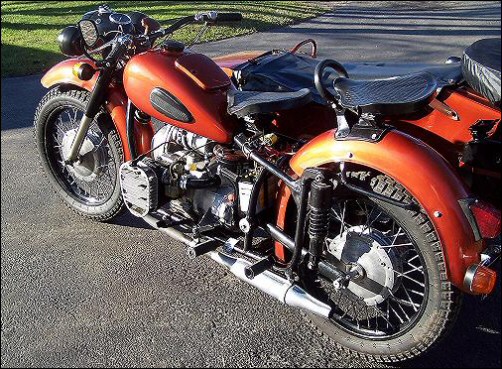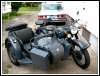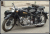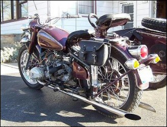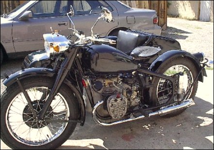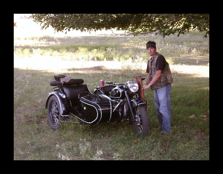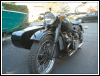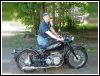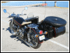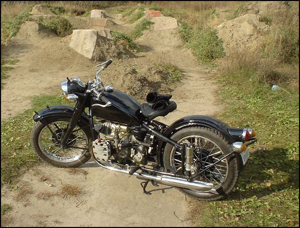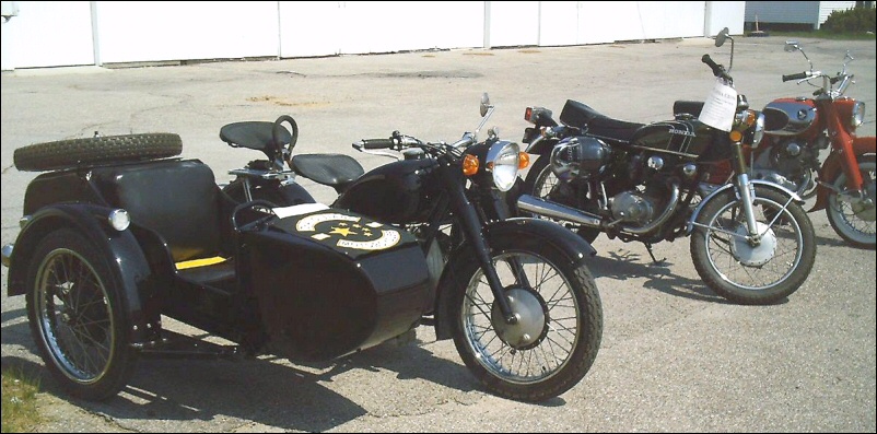 | Jeff Biagetti not only owns a CJ OHV but a Dnepr SV as well. This bike has a toolbox tanks and running lights. That swing arm frame must be quite an improvement over the old M72 plunger. Cool bikes... | |||||