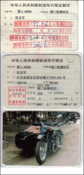 This is a Chinese registration for Andy's bike. The enlarged image shows all three pages. | ||||
