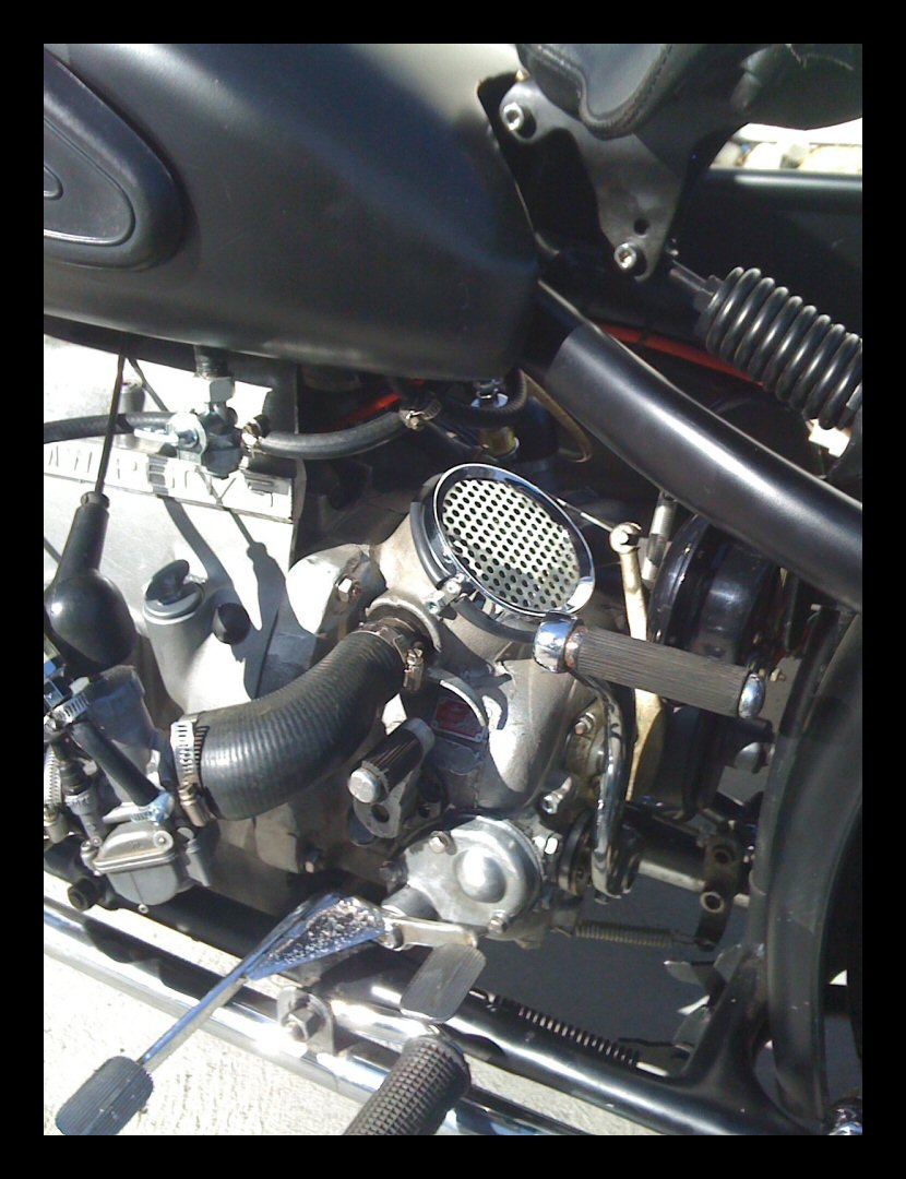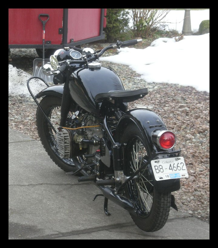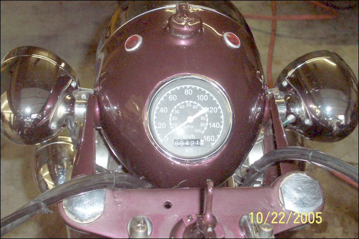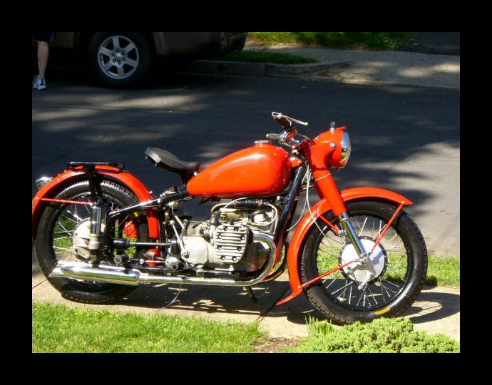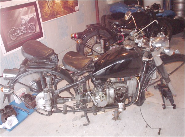 Jim Middler's CJ M5. That's rightan M5. The frame and tank are Chinese BMW knock-offs and that's a CJ OHV engine. Jim has some big plans for this bike. | ||||