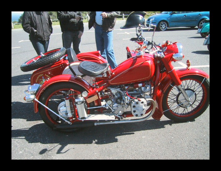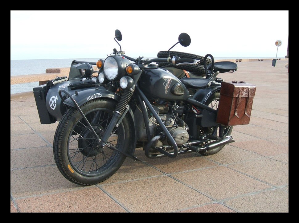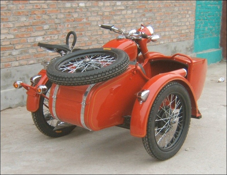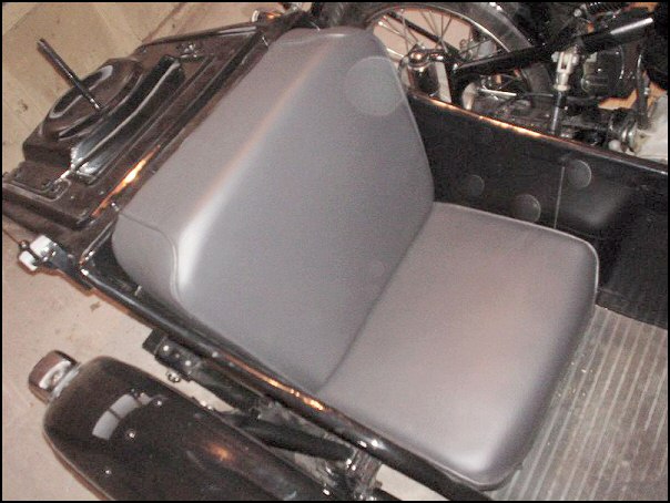 The sidecar seat is upholstered with marine materialsuitable for all kinds of weather. It looks excellent. | ||||