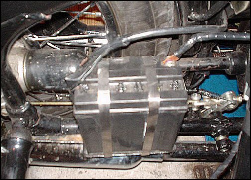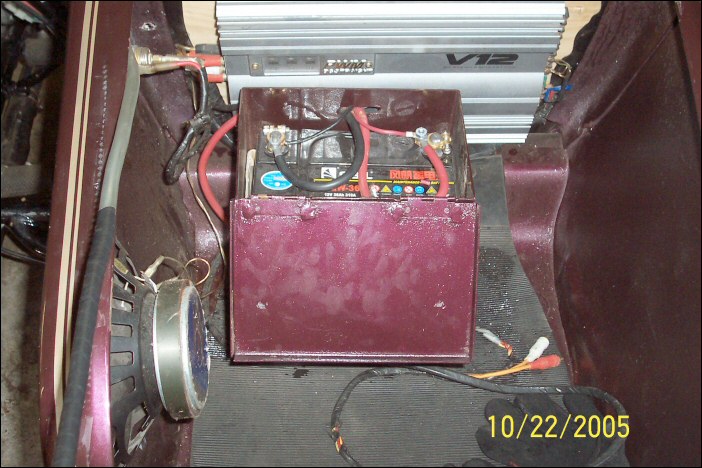 A double C-clamp hold-down for the battery. | ||||