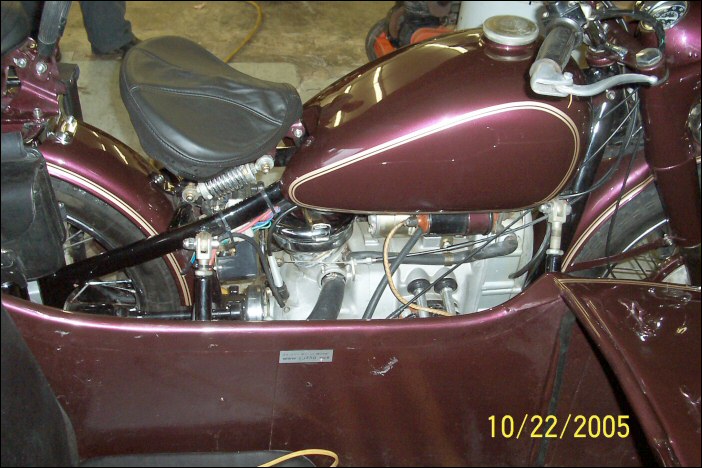 "I had Jim Bryant's guys at Jimbo's Classic Sidecars redo the mechanicals and Bill do the paint just before I brought it back with me to Edmonton, Alberta, Canada in Summer 2006. Still running strong, although I took off the dual spare wheels as the weight of them was cracking the bucket below the hinges!" | ||||