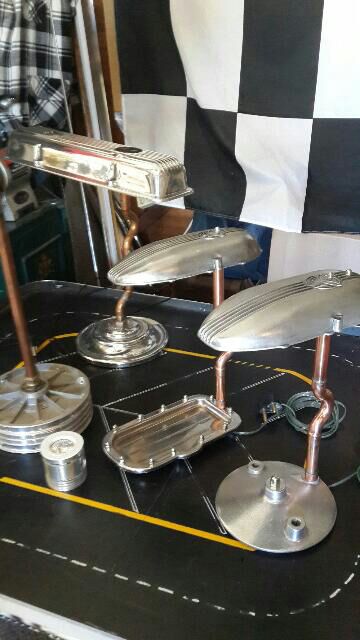 Have you ever seen desk lamps fabricated from CJ parts? (Be sure to click on the thumbnails so you can see the whole picture.) These lamps are available for sale. Just send Tim an email if you'd like to have one. | |||