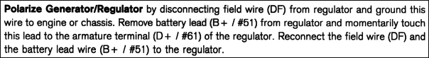 | Polarising the Generator Apparently it is good practice to repolarise a generator when you remount it or after the battery was removed, although there should usually be enough residual magnetism. This is from the Bosch manual: |