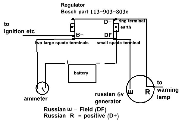 Testing the Generator Sean also gave me a simple test for generator output. I drew a diagram: Basically, all you do is to disconnect all the bikes wiring. Wire the Field to earth. Wire a bulb to the