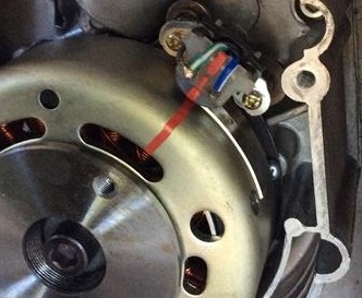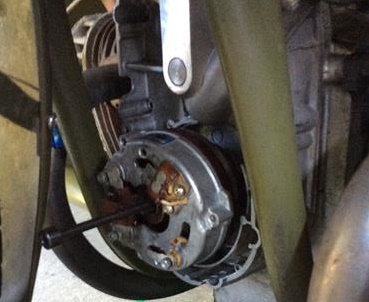 We fitted the new rotor and carefully lined up the painted marks on the rotor and sender so that the ignition timing would be perfect and then tightened up the bolt which fastens the rotor to the crankshaft. There are a lot of steps here which are fully explained in the manual I wrote. | ||||