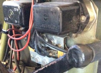 Here we see the starter solenoid (relay), the voltage regulator and the rectifier (diode board). | ||||