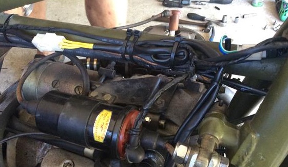 After running the engine for a few seconds using the fuel remaining in the carbies just to check that all is okay, it is time to tidy up the wiring using black plastic insulation tape and cable ties and making loops to take up the slack where the new wiring looms are too long. | ||||