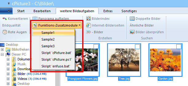 The function start(...) will be called with a list of all selected pictures. In this first sample, all picture names will displayed in the message box: