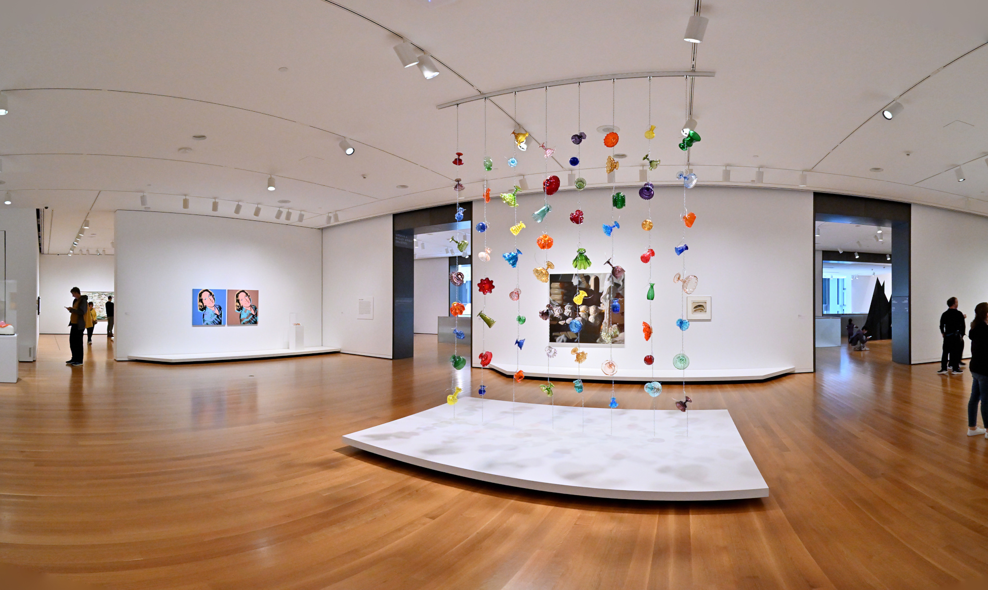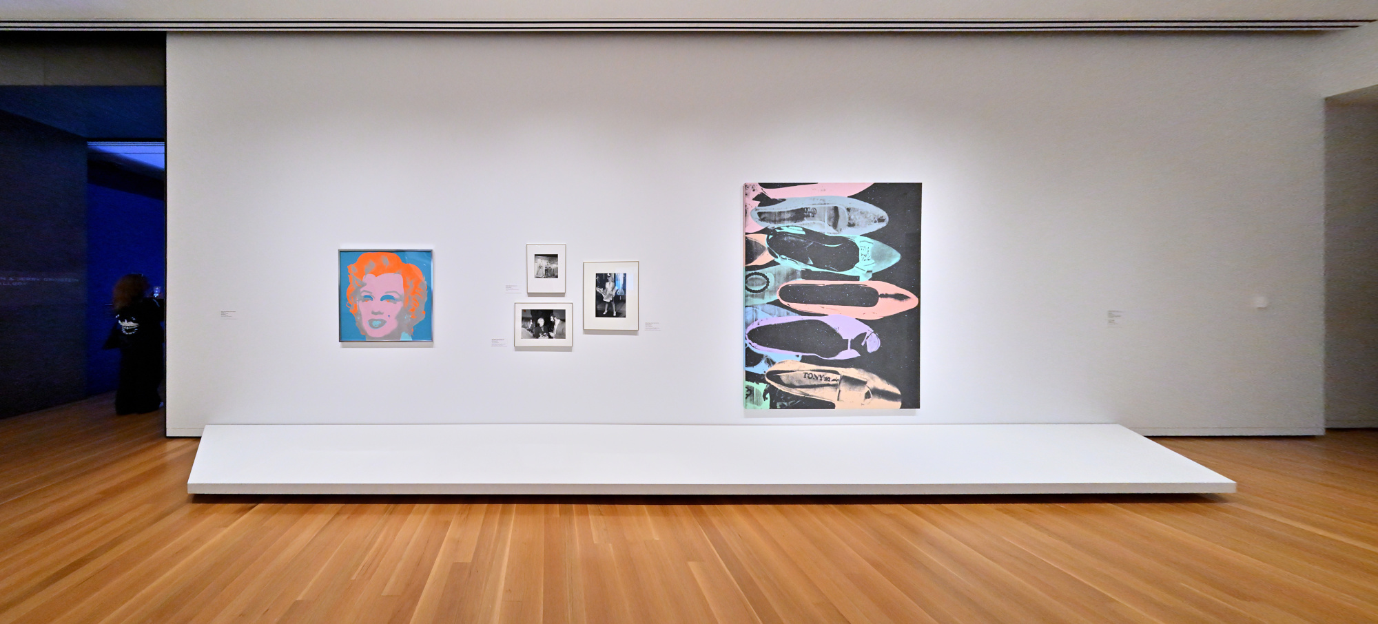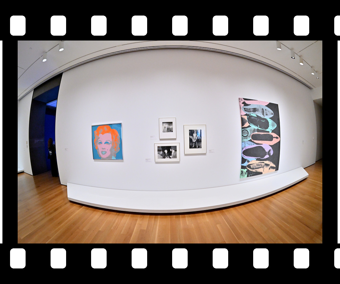 This exhibition includes several works by Andy Warhol, highlighting his iconic Pop Art style.