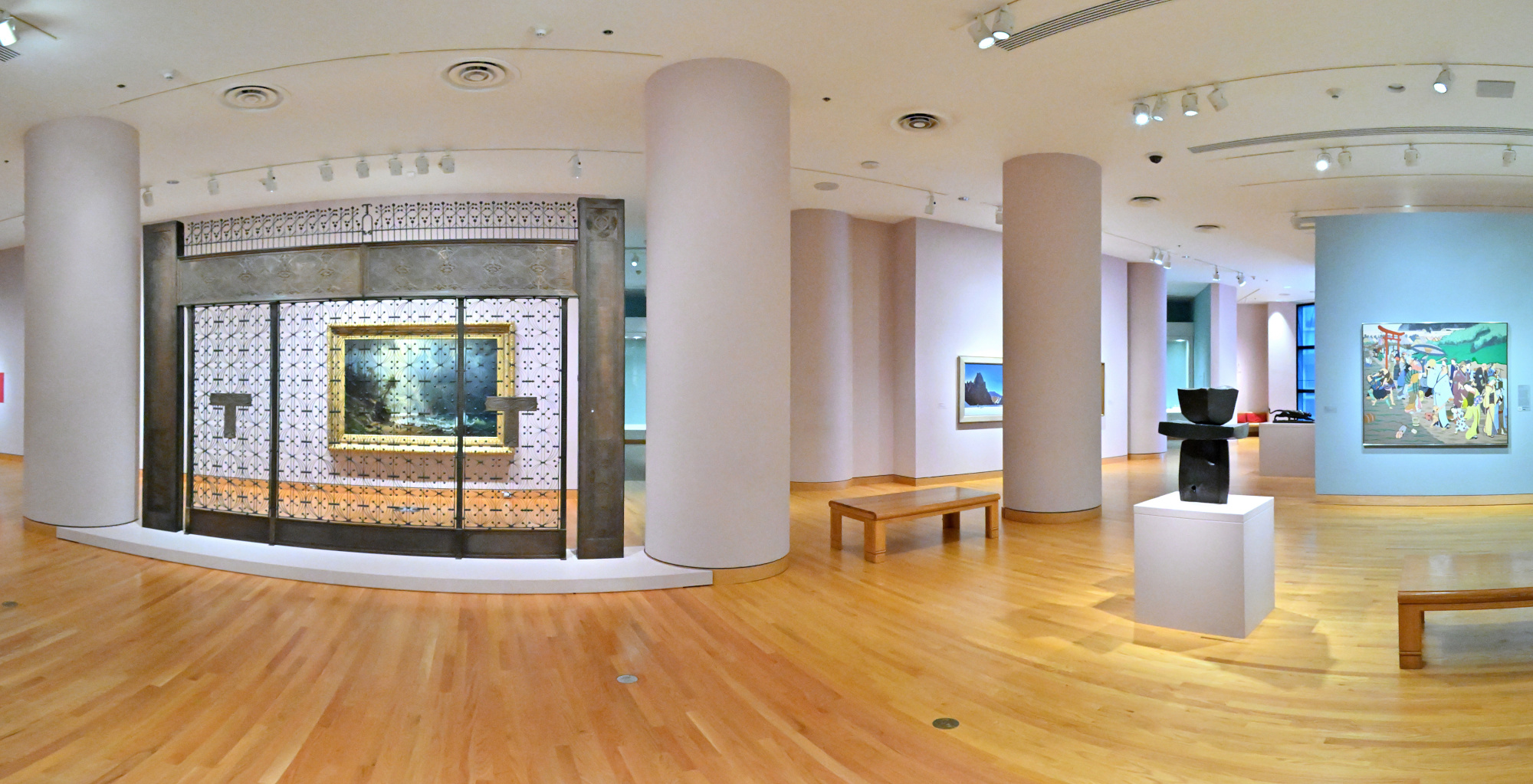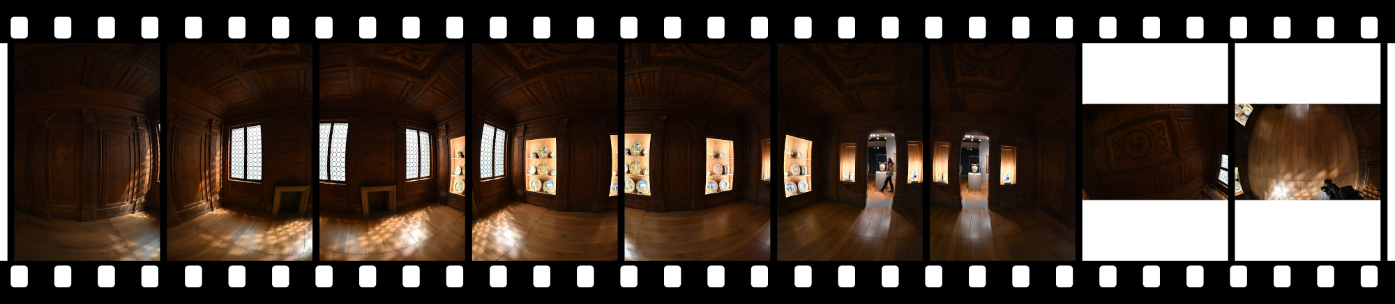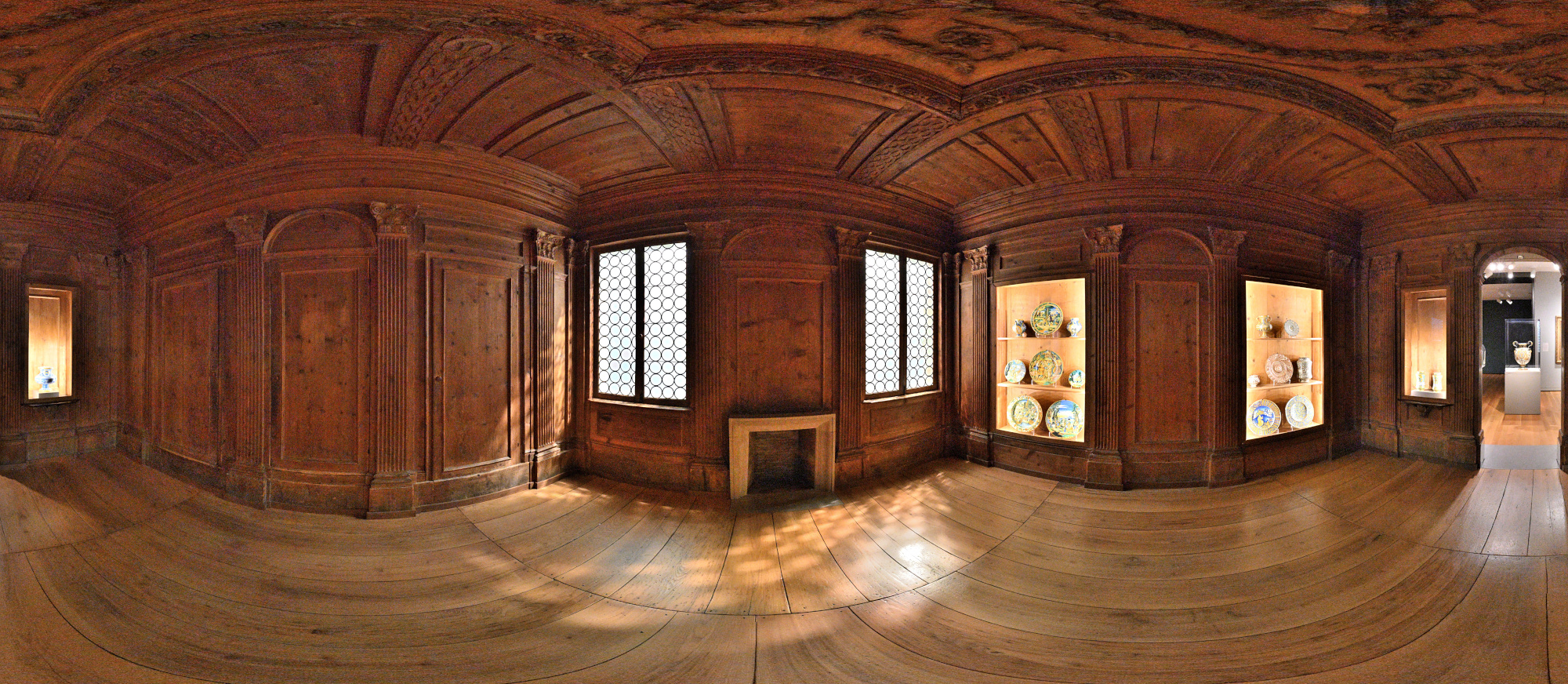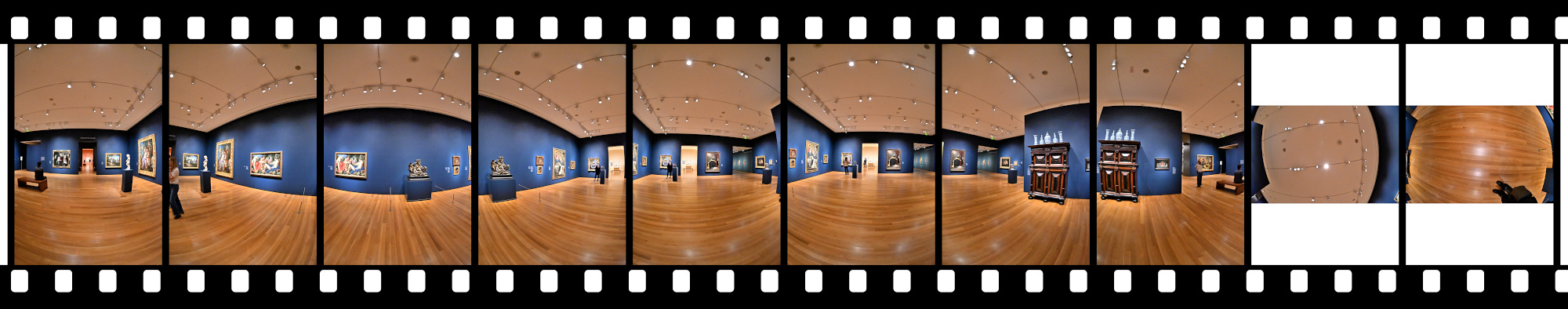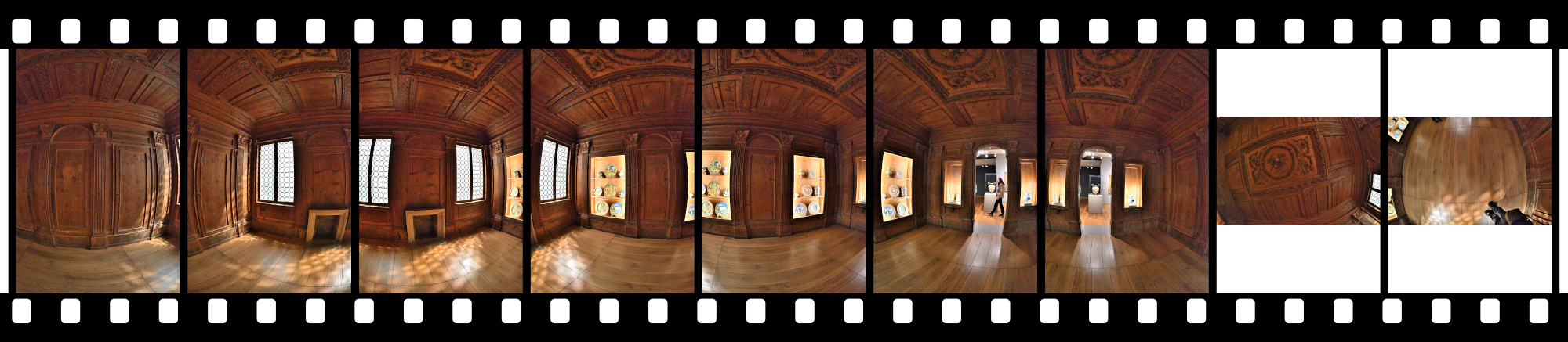 There was no time for multiple exposures for HDR, and of course no tripod because we were in a museum. I only had a brief moment when the room was empty to capture a 360°×180° panorama.