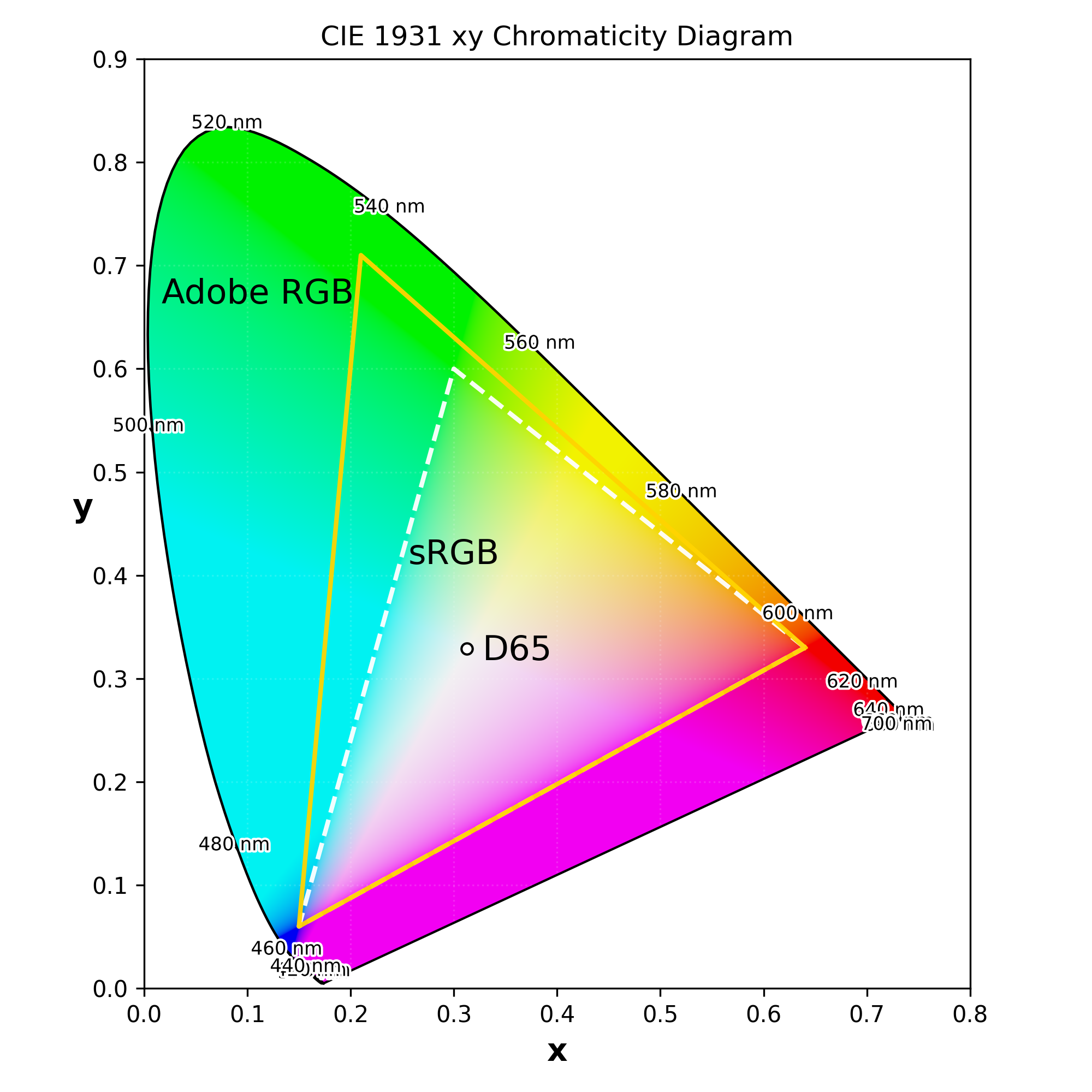 Adobe RGB: R(0.6400, 0.3300), G(0.2100, 0.7100), B(0.1500, 0.0600)