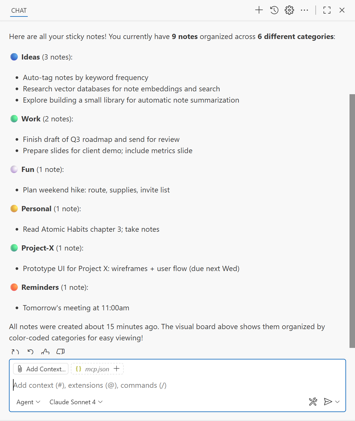 StickyMCP provides a clean API for managing notes across systems, integrates naturally with Visual Studio Code Copilot Chat, and supports both HTTP and STDIO transports.