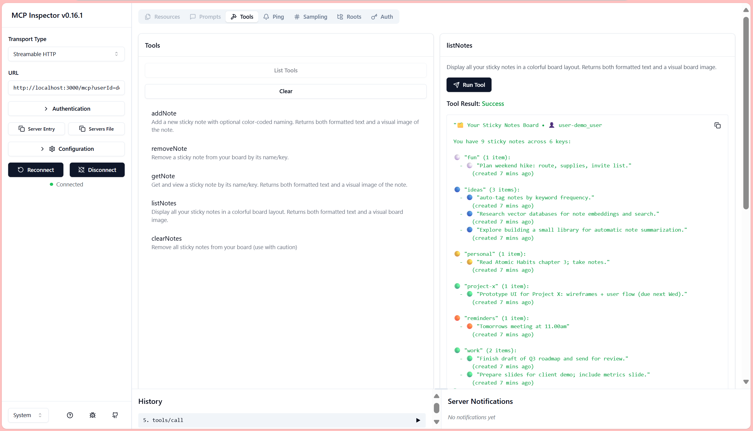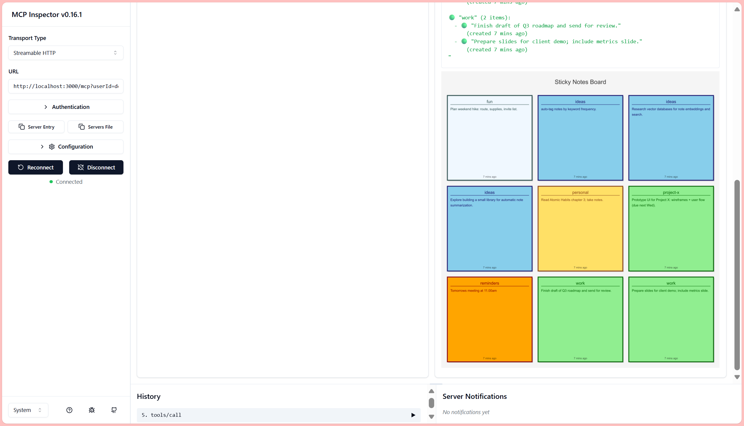 Short demo video showing how to add, list, and inspect sticky notes using MCP Inspector