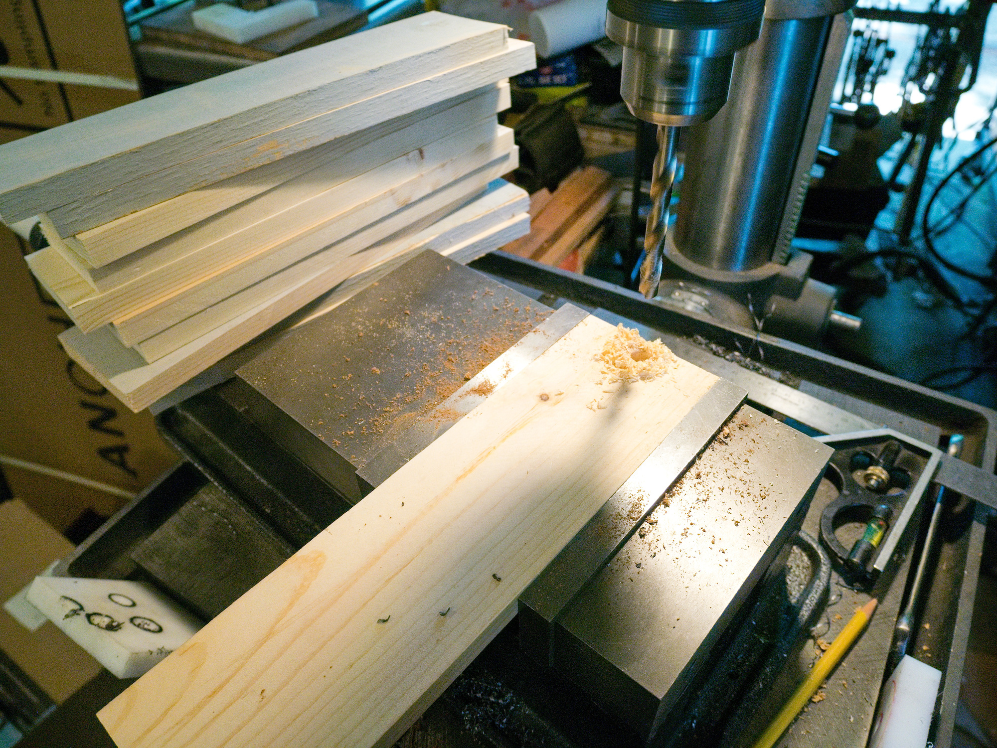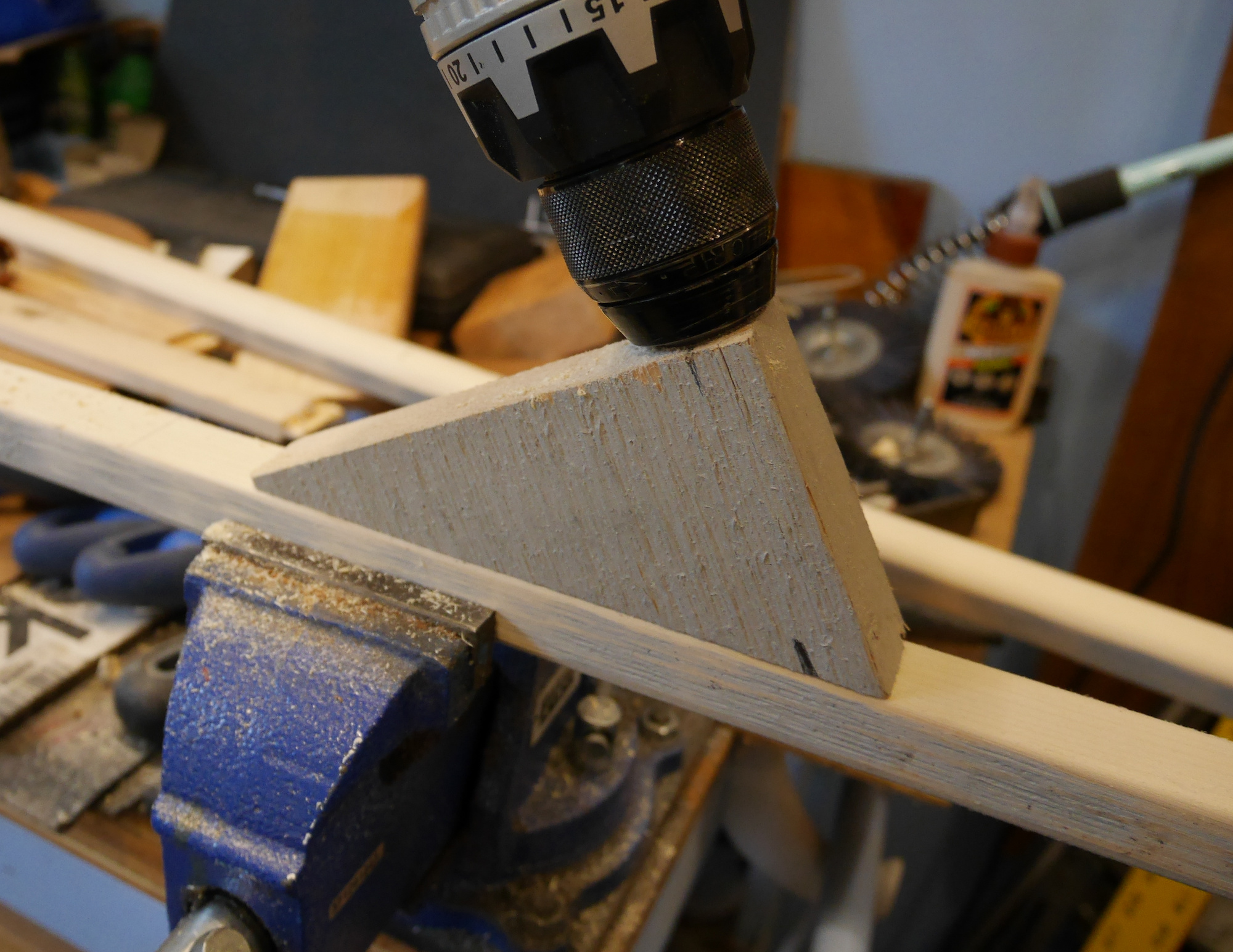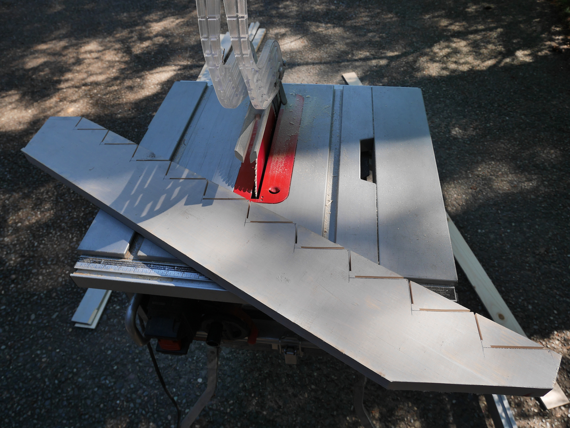 The railing holes are cut with a 30° alignment using one of the cut offs as a guide.