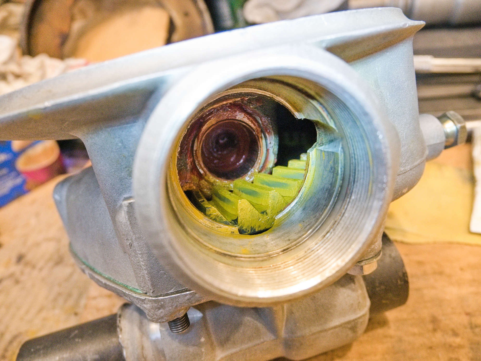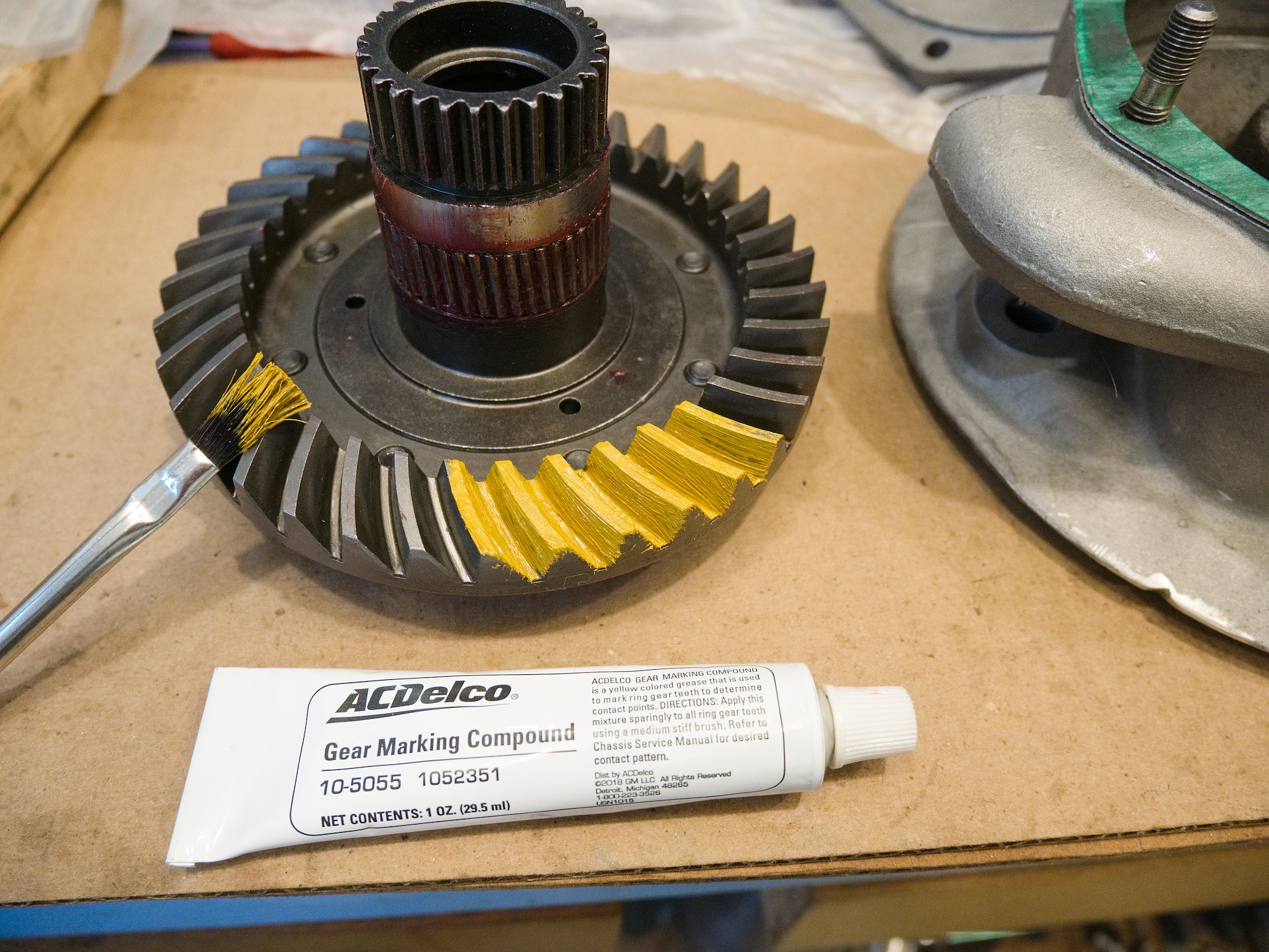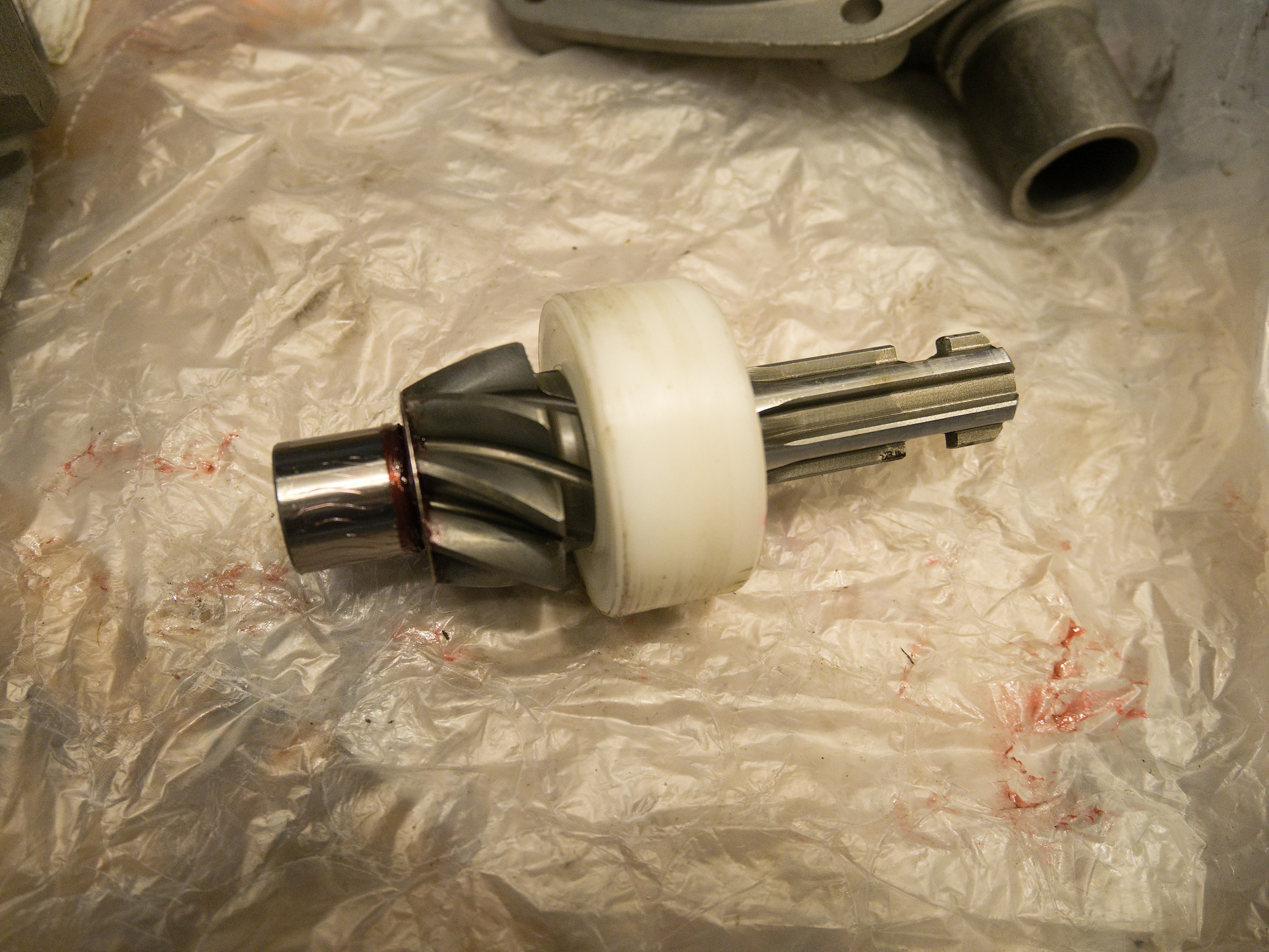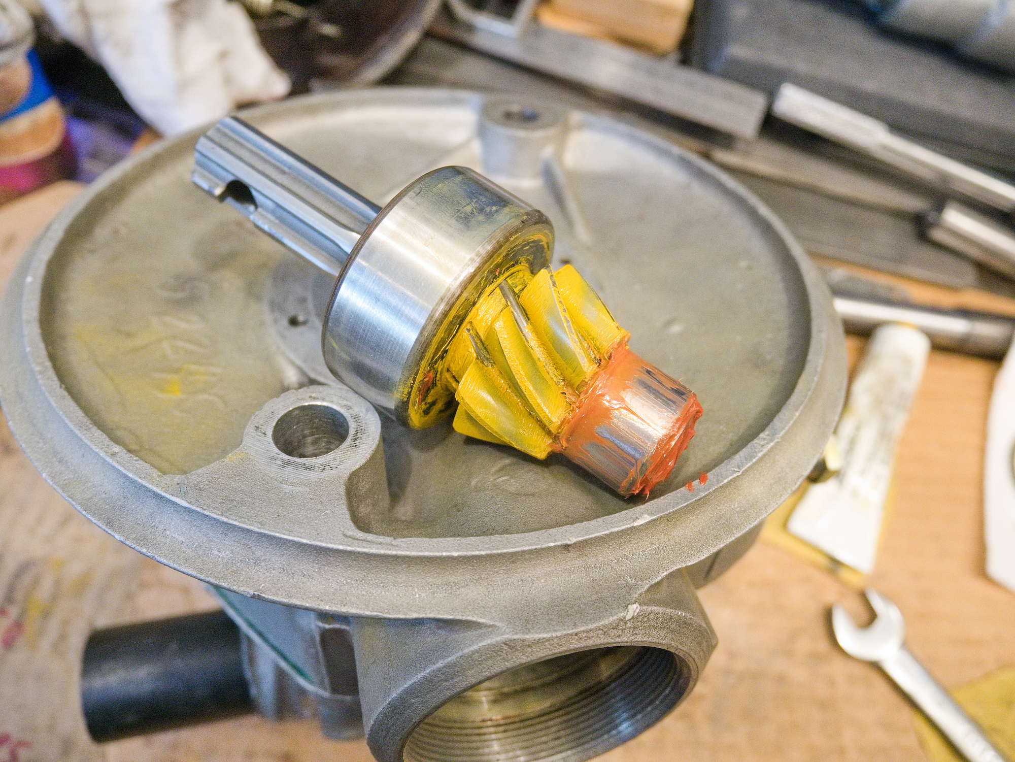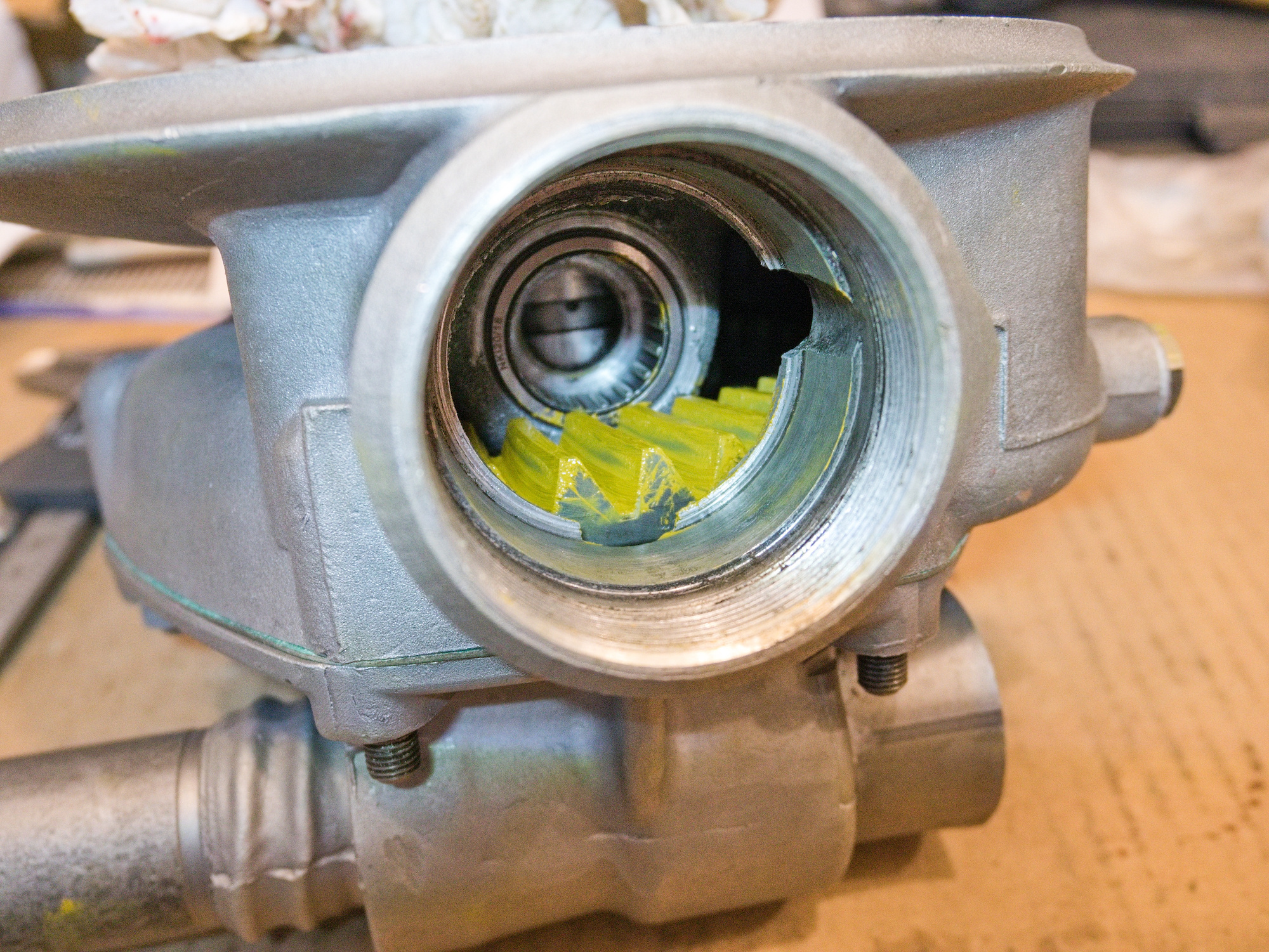 To make the pinion adjustment easier, a plastic replacement for the bearing with a undersize is used to allow quickly sliding the pinion gear in and out.