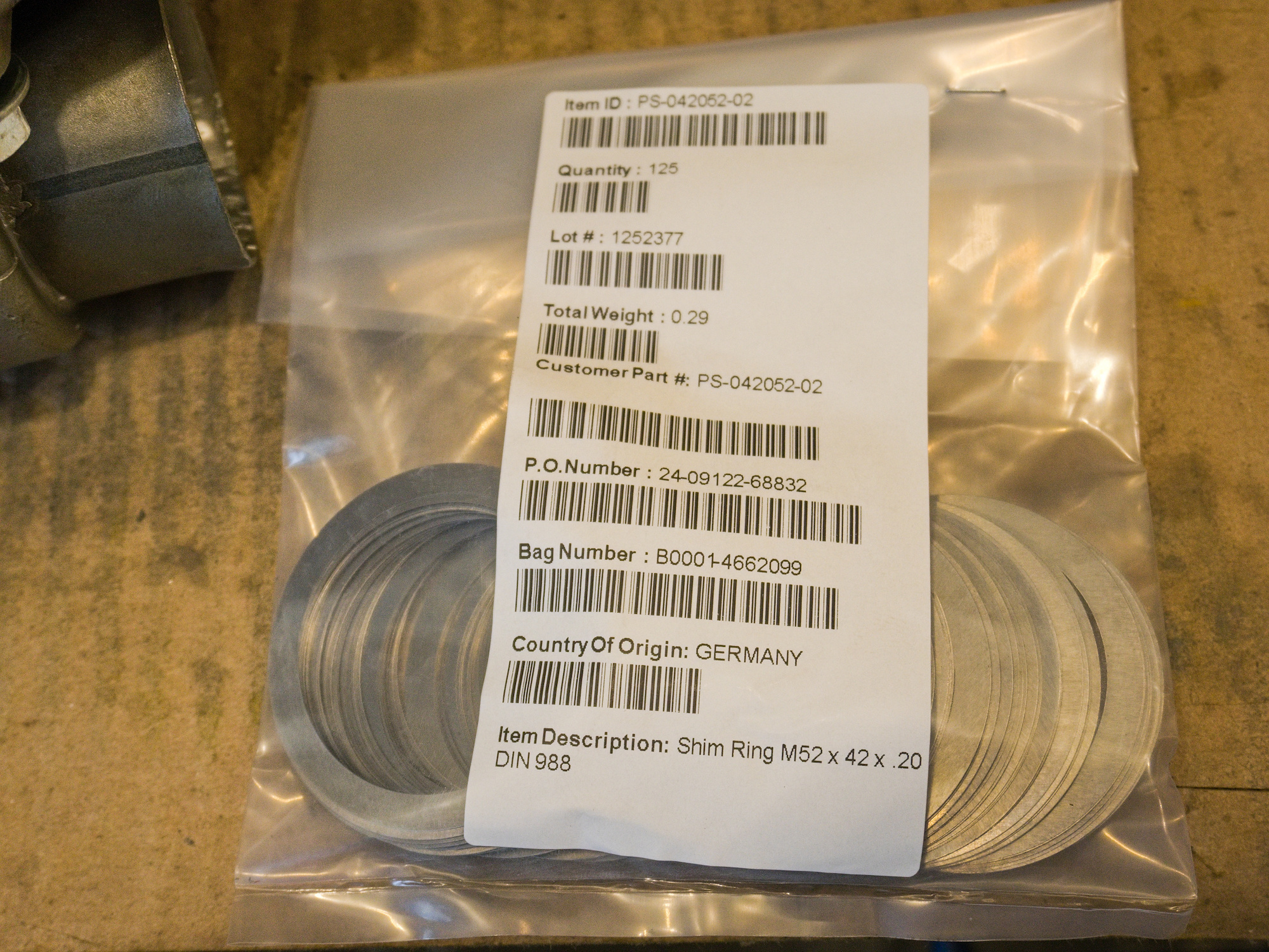 The 1-3/8"x1-7/8" Arbor Shims are used to space the ring gear. The M52x42x0.2 shims are used to space the pinion gear. The M52 shims were sold in a pack of 125 only.