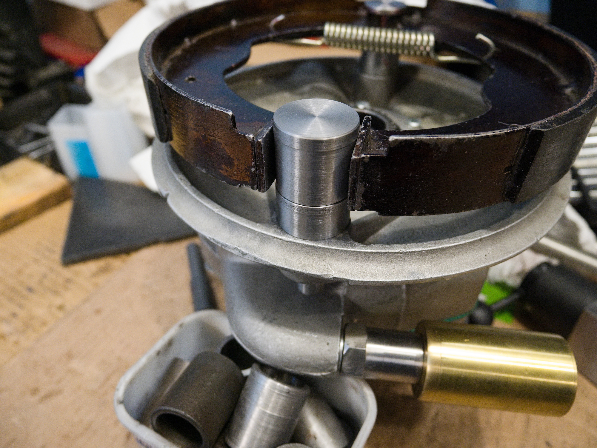To support the wider brake pads used along with the M5 wheels on the CJ750, the existing brake cam and holder gets replaced.