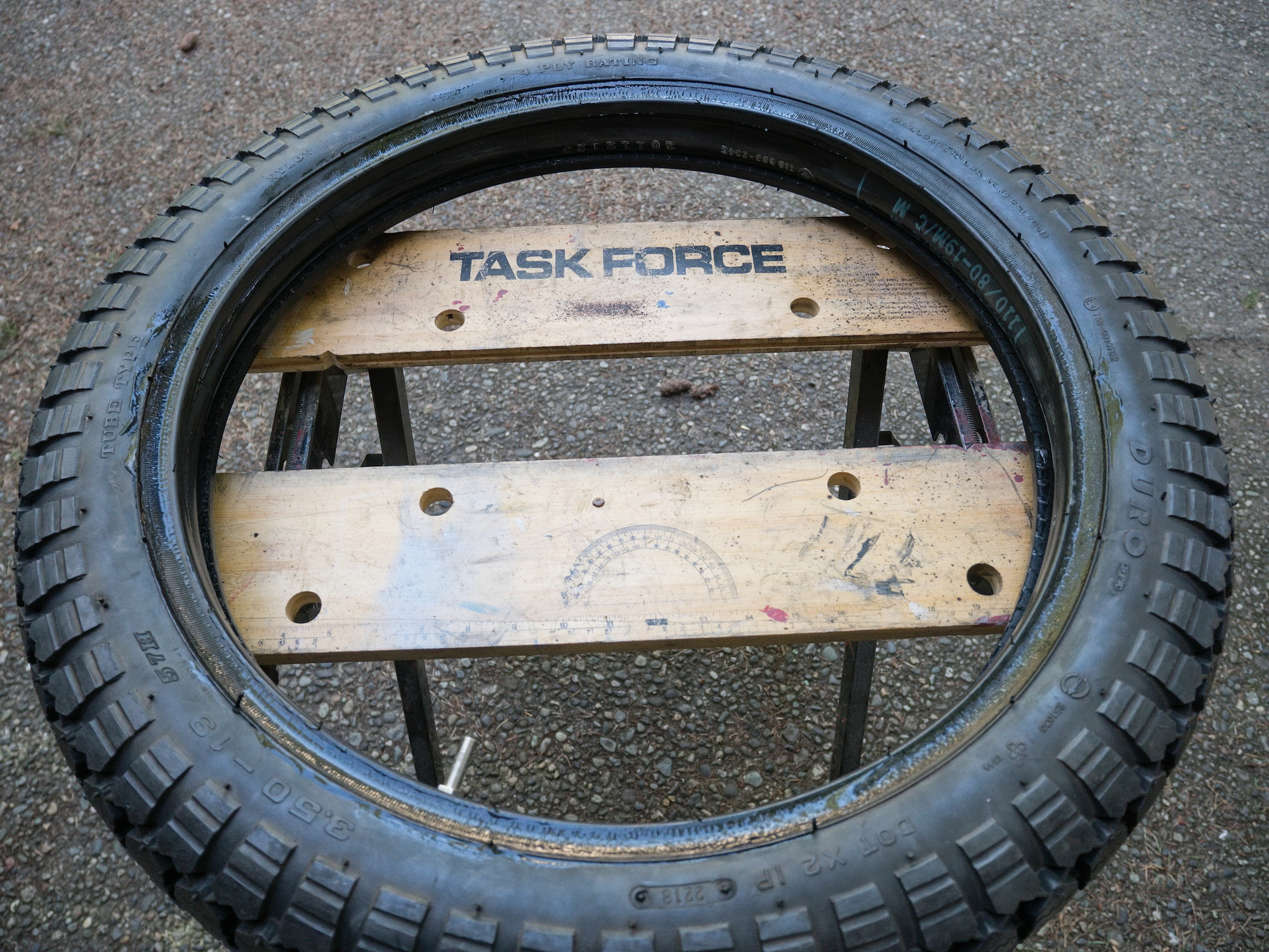 Using a tire pusher tool makes the process very easy. Using tire spoons require some space between tire and rim and can make installation more difficult. Especially with the stiff side car tires.