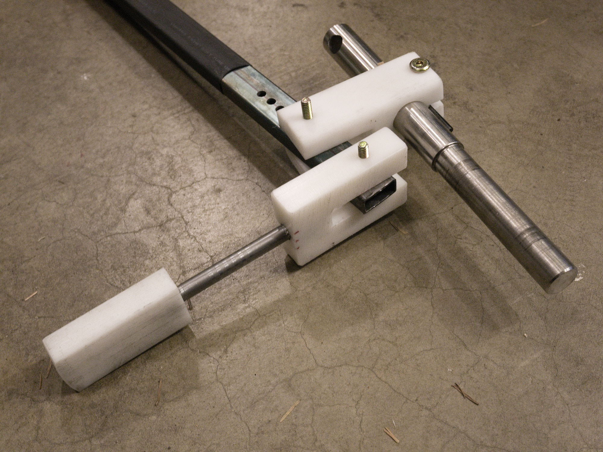 I built a tire pusher tool using an old axle, several pieces of plastic and a rectangular tube steel for the handle.