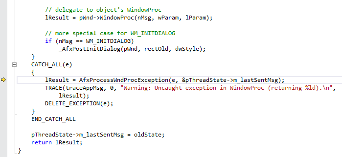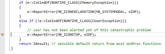 LRESULT CWinApp::ProcessWndProcException(CException* e, const MSG* pMsg)