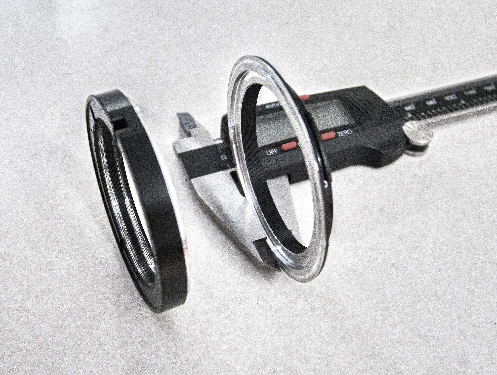 The right with the Z mount is 7mm in width and has the 58mm x 1.5mm indentation to connect to the F mount side.