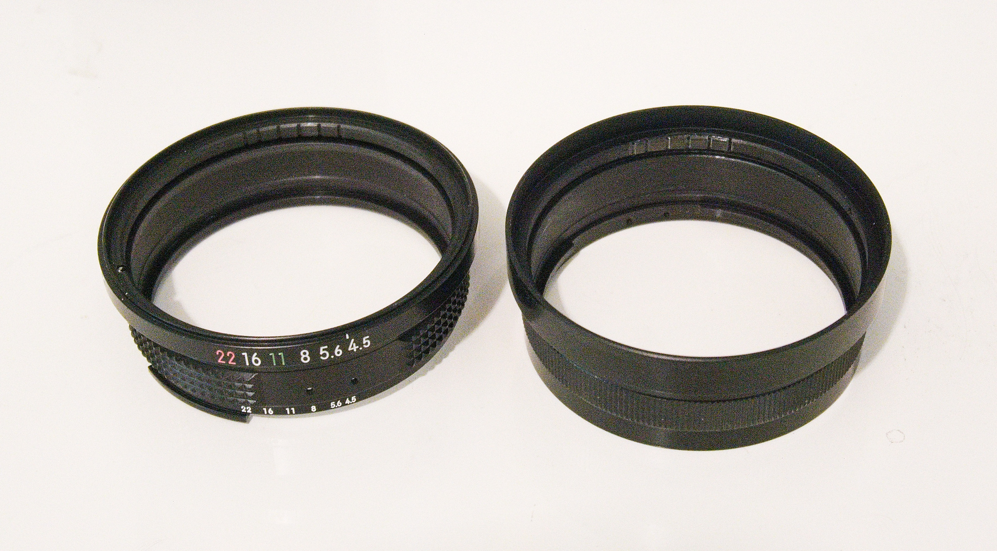 The other difference between kit #52 and #53 is that the aperture click notches are on the opposite side: