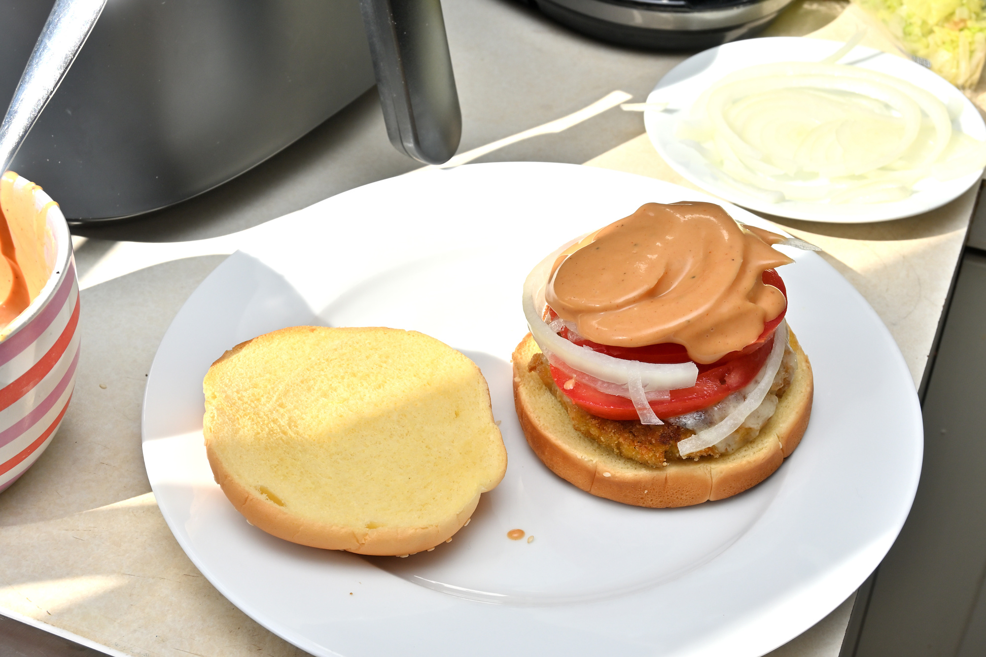 Die Frikadelle wird aus frischem Hühnchen und Gemüse gemacht.