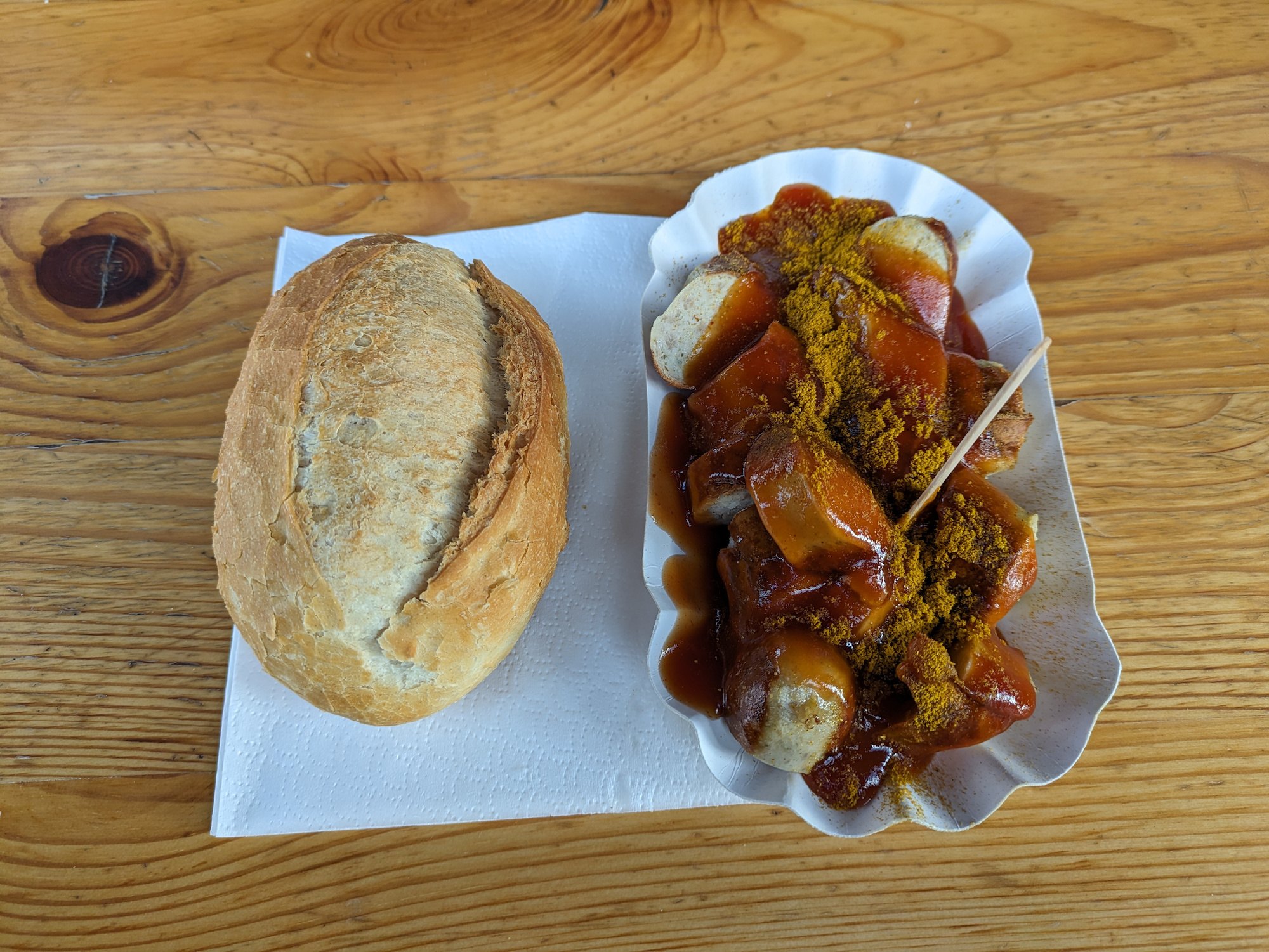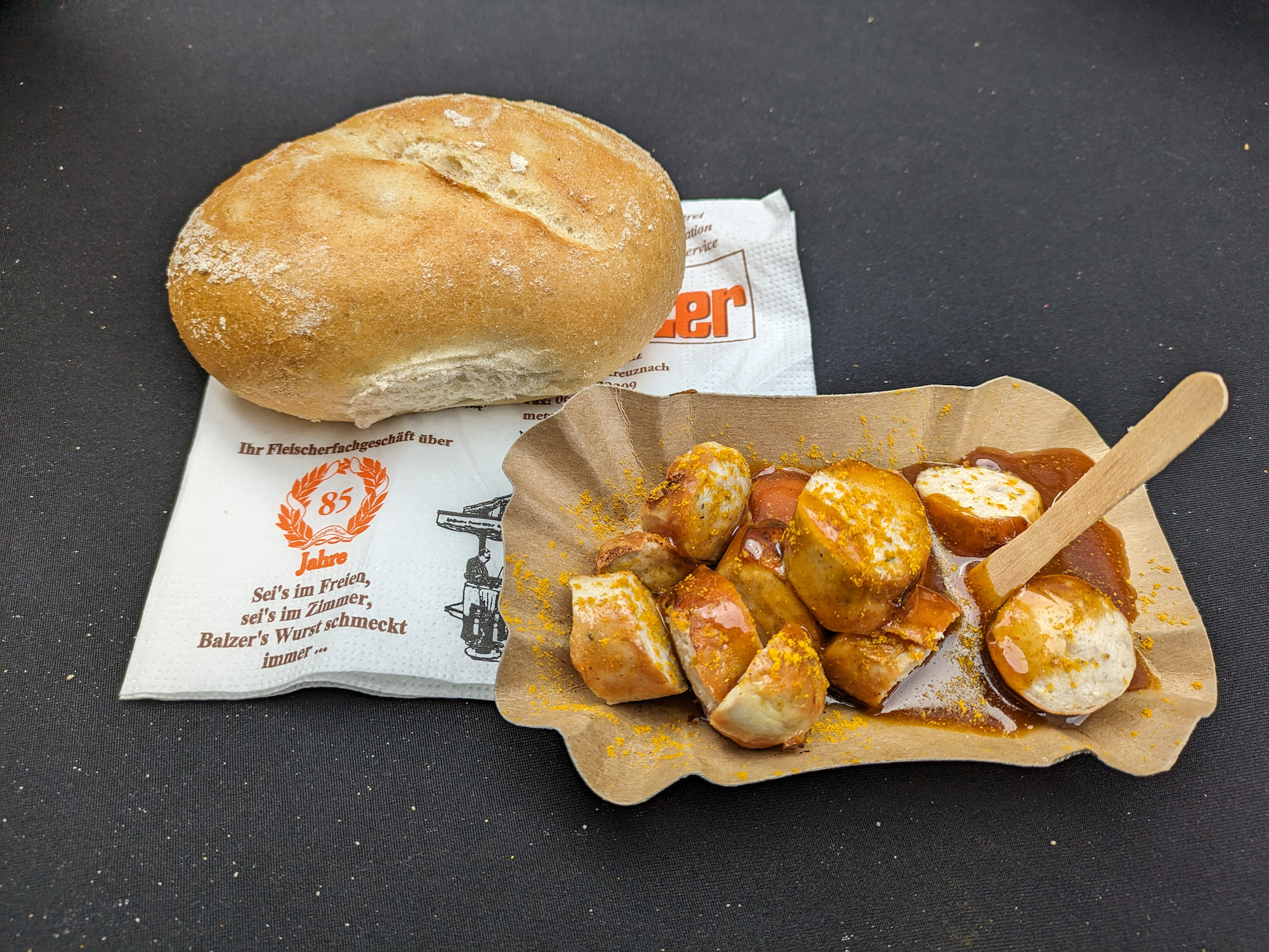 Currywurst, immer mit Brötchen: