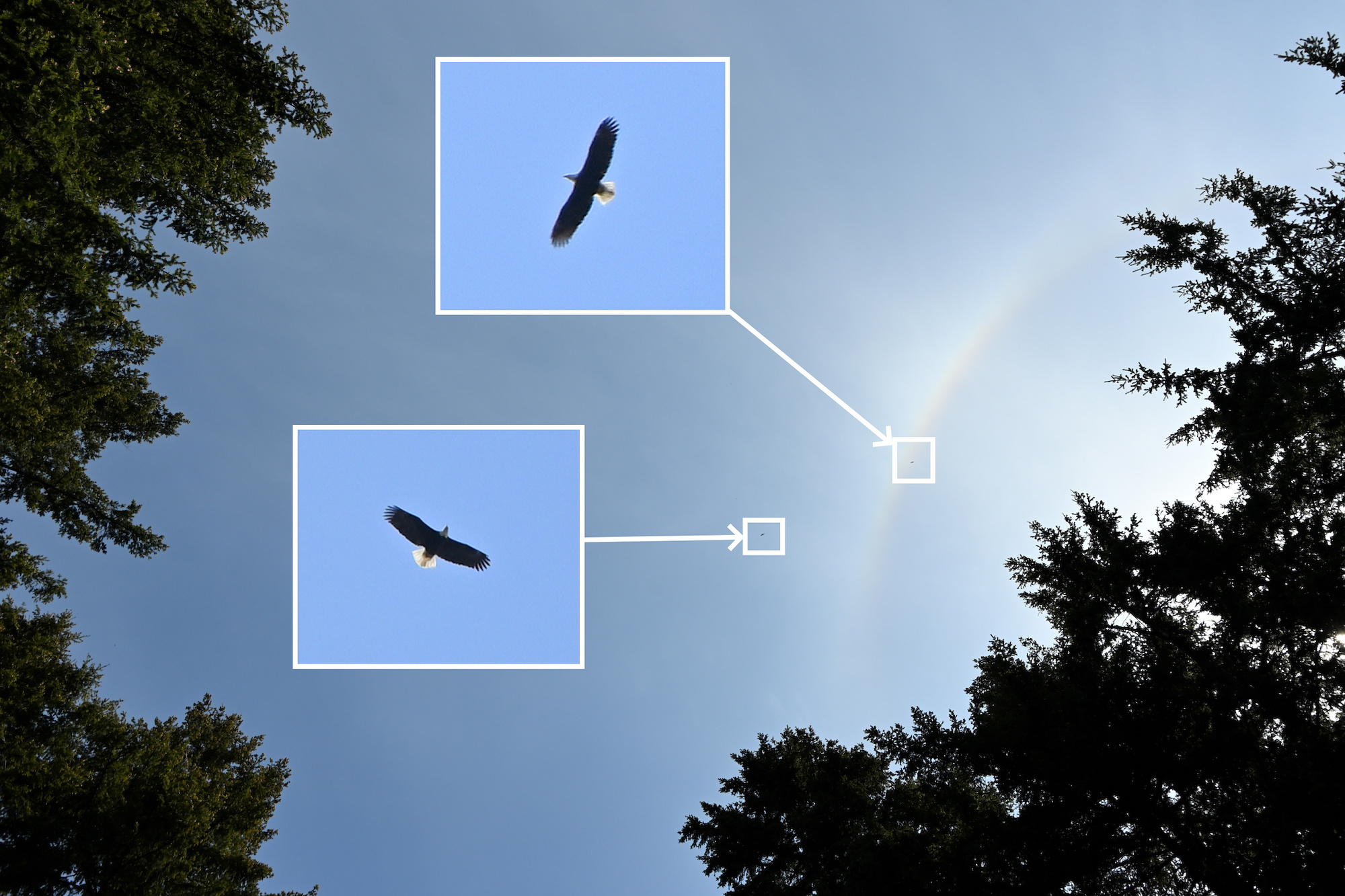 Die Adler im 18mm-Gesamtbild sind 5 pixel groß.