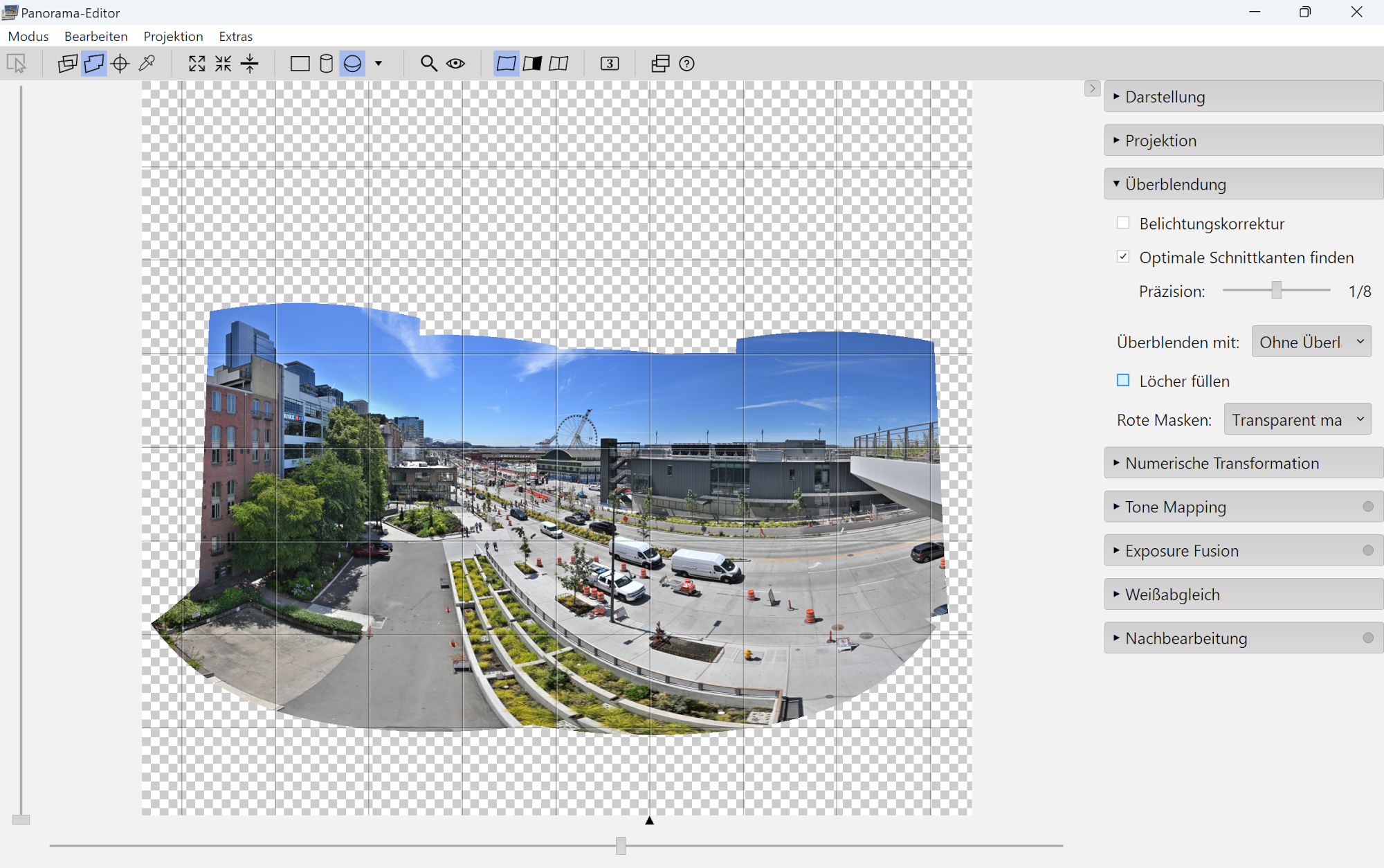 Creating a panorama can often lead to uncovered areas. For example a panorama created from these pictures (Seattle Waterfront Park Project):