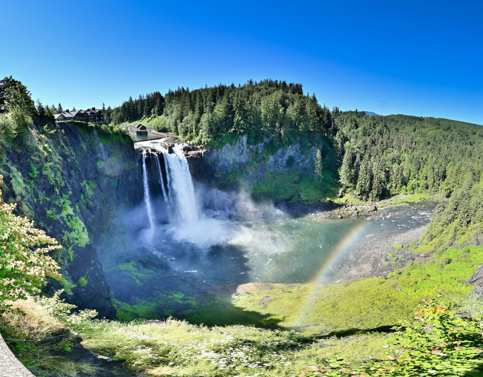 Das Snoqualmie Falls Wasserkraftwerk besteht aus zwei Kraftwerken mit einer kombinierten Kapazität von 53,9 MW. Es entnimmt Wasser aus einem Stausee oberhalb der Wasserfälle, um saubere Wasserkraft fßr etwa 40.000 Haushalte in der Nähe von Seattle zu erzeugen. Zusätzlich hat das Kraftwerk historische Bedeutung und bietet Üffentliche Parks und Wanderwege entlang des Snoqualmie River.
