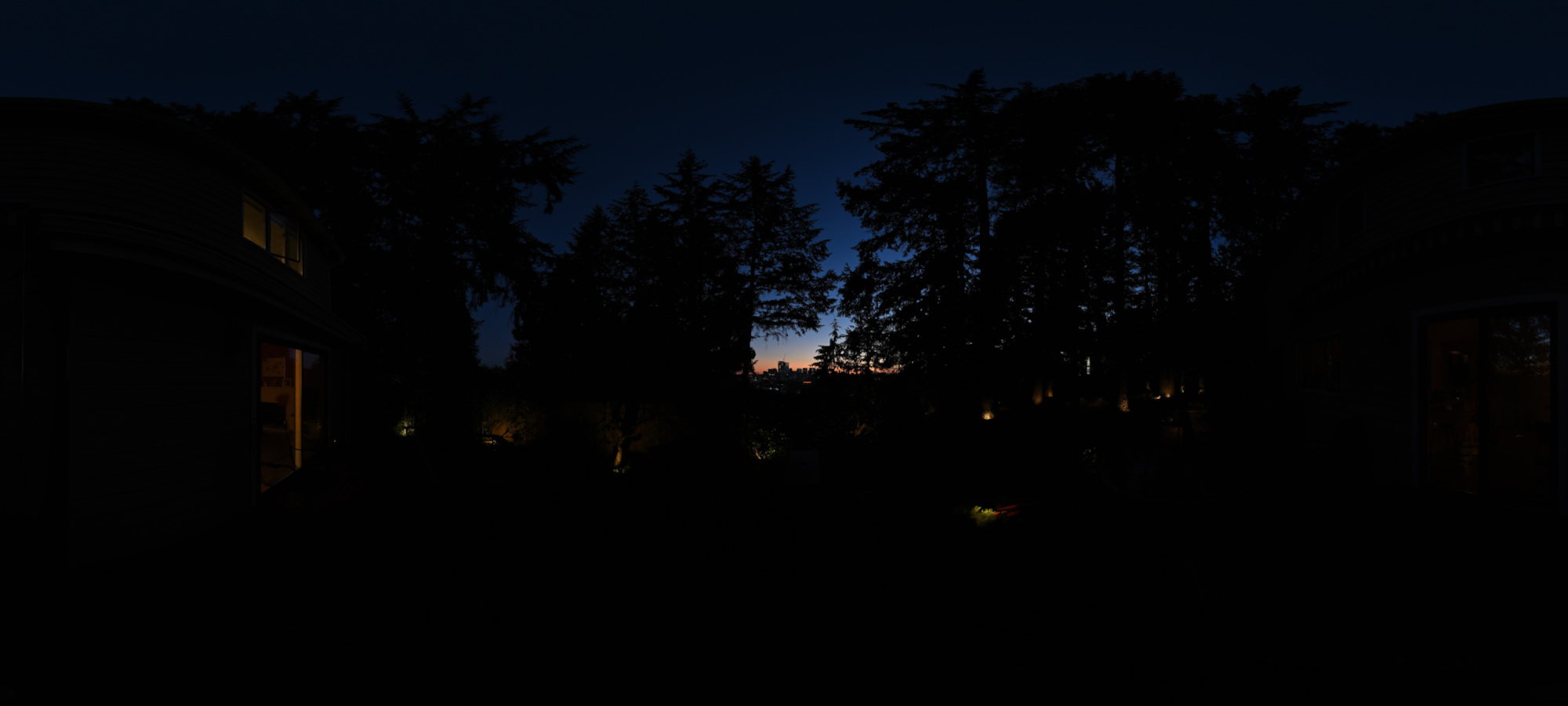 Without precise control points, a 360°×180° panorama can become warped and distorted. It might seem that creating panoramas with large areas of uniform dark color would be easier, but unfortunately, there are no shortcuts in this process. Accurate control points are essential for maintaining the integrity of the image.